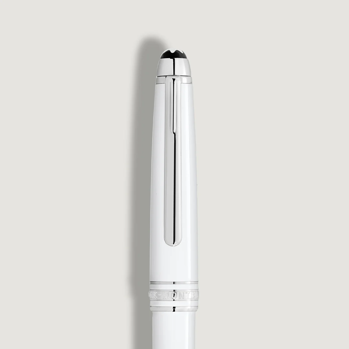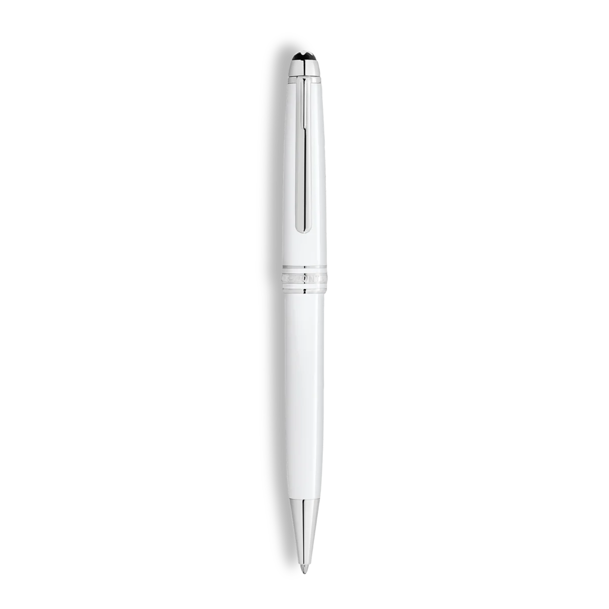 La Meisterstück Classique Ballpoint in preziosa resina bianca con eleganti finiture placcate in platino, sormontata dall’emblema Montblanc bianco intarsiato nella parte superiore del cappuccio, si evolve in un’icona di design distintiva.