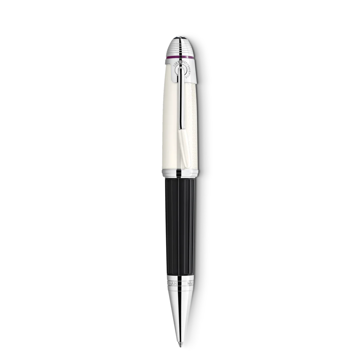 Nel 2022, Montblanc rende omaggio a uno dei musicisti più celebri del XX secolo, considerato da molti uno dei chitarristi elettrici più influenti nella storia della musica popolare: Jimi Hendrix. Realizzato in resina pregiata, il colore bianco sporco del cappuccio e il suo motivo inciso si ispirano a una delle cinghie della chitarra indossate da Hendrix, mentre il fusto nero presenta un elegante motivo che ricorda un pedale WAH. La clip rivestita in platino è angolata in modo da assomigliare alla barra del vibrato di una chitarra elettrica. L’emblema Montblanc sulla parte superiore del cappuccio è realizzato in resina pregiata.