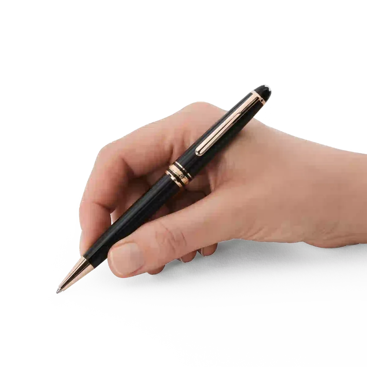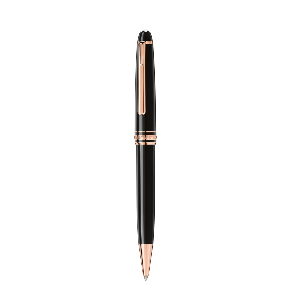 La collezione Montblanc Meisterstück Classique placcata in oro rosa è un design che scrive la storia. Introdotta nel 1924, Meisterstück, che significa “capolavoro”, è diventata il simbolo della scrittura di lusso di alta qualità. Il cappuccio e il fusto sono realizzati in preziosa resina nera con l’iconico emblema bianco Montblanc intarsiato nella parte superiore del cappuccio.