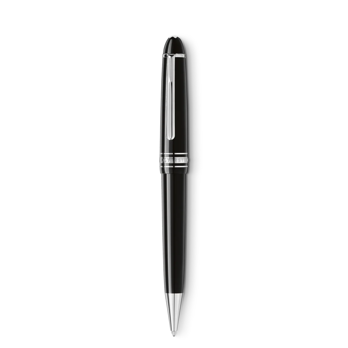 La Meisterstück Midsize in pregiata resina nero intenso con eleganti dettagli placcati in platino, sormontata dall’emblema bianco Montblanc, si evolve in un’icona di design distintiva. Le sue dimensioni sono intermedie tra quelle delle penne a sfera LeGrand e Classique.