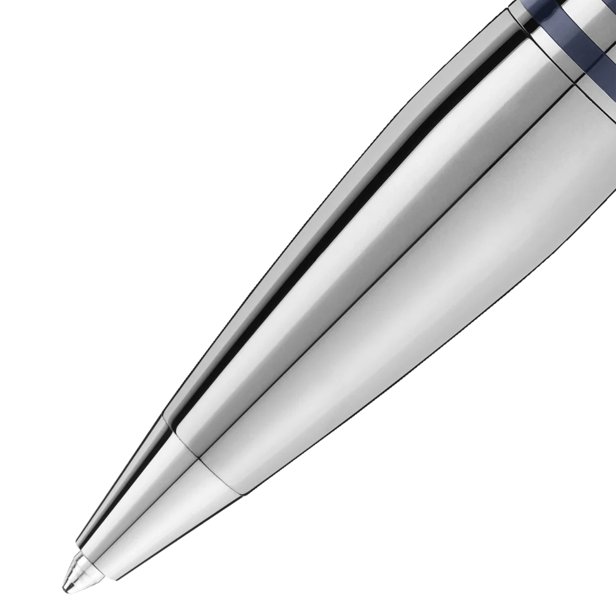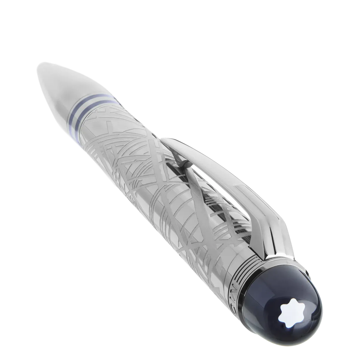 StarWalker SpaceBlue guarda oltre il pianeta Terra e si rivolge alle stelle e alla galassia. Questa nuova collezione StarWalker presenta un nuovo look per il fusto in metallo, con un design che richiama le intricate strutture del motivo Widmanstätten, una delle creazioni più ipnotiche della natura. Tutte le parti metalliche sono rivestite in rutenio scuro, accompagnate da un sottodomo blu spazio profondo sulla parte superiore del cappuccio, che ricorda le tonalità di un cielo stellato, su cui fluttua l’emblema Montblanc.