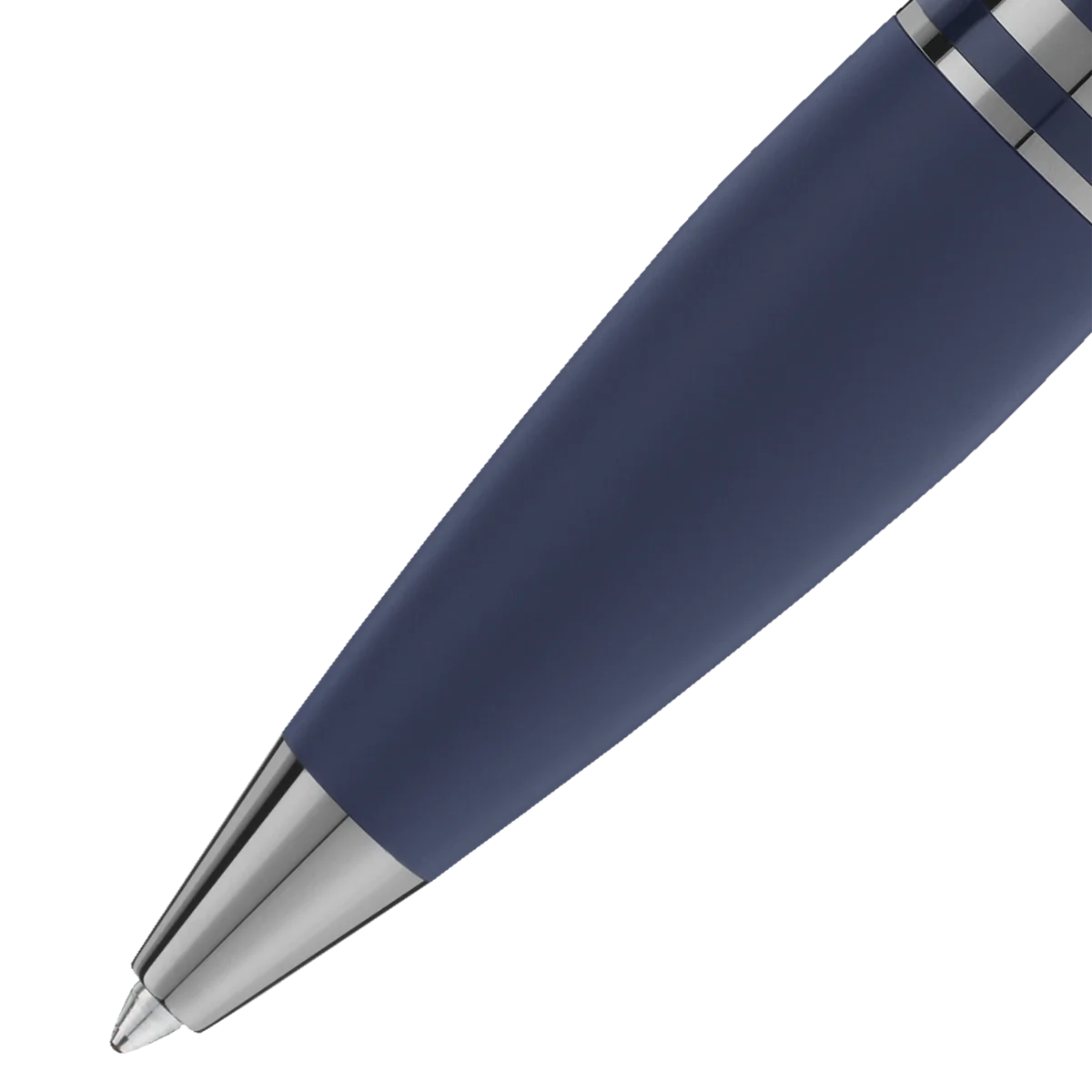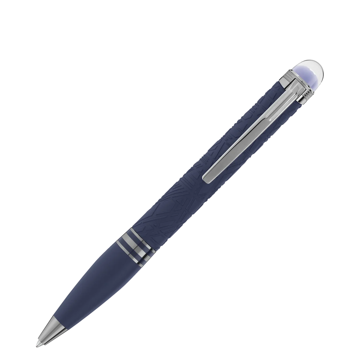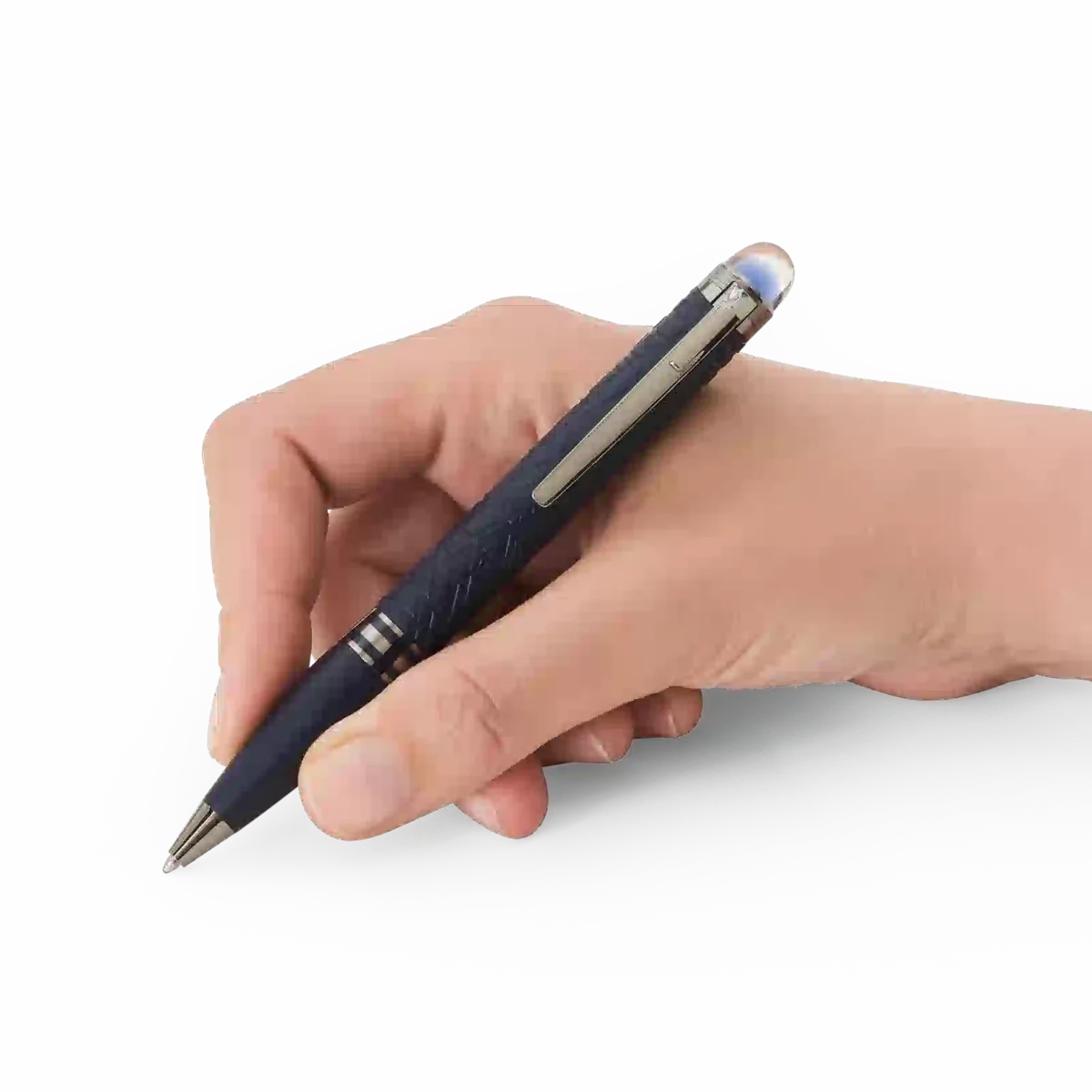 StarWalker SpaceBlue guarda oltre il pianeta Terra e si rivolge alle stelle e alla galassia. Questa nuova collezione StarWalker conferisce un nuovo look al fusto in resina, con un design che richiama le intricate strutture del motivo Widmanstätten, una delle creazioni più ipnotiche della natura. Tutte le parti metalliche sono rivestite in rutenio scuro, accompagnato da una tonalità blu spazio profondo per la resina preziosa opaca, che ricorda le sfumature di un cielo stellato. Inoltre, il sottodomo sulla parte superiore del cappuccio, su cui galleggia l’emblema Montblanc, è disponibile in un blu spazio profondo.