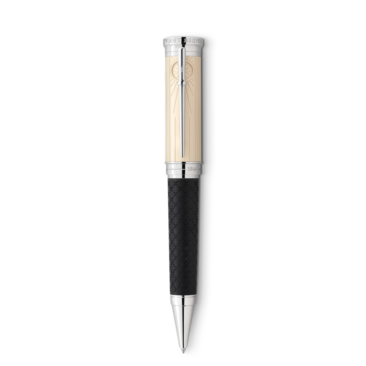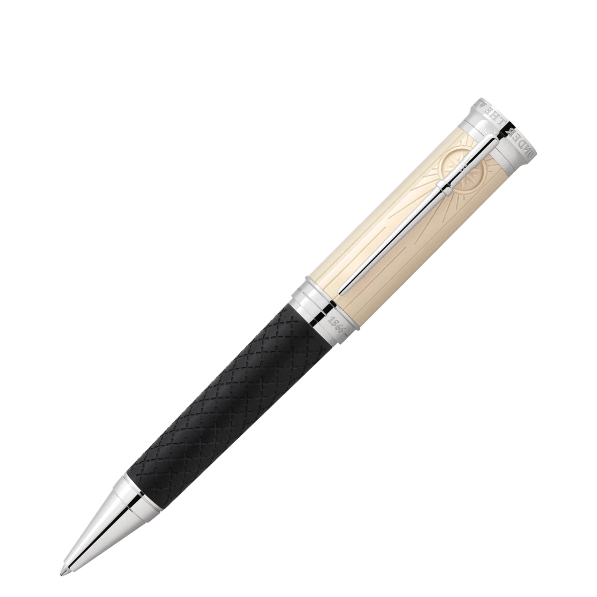 Robert Louis Stevenson, nato a Edimburgo, in Scozia, nel 1850, aveva due grandi desideri: la libertà e l’immersione in altri mondi. Ha scritto saggi e resoconti di viaggio, oltre alle sue leggendarie storie d’avventura popolate da personaggi straordinari i cui nomi fanno rabbrividire i lettori di tutto il mondo: Long John Silver, Capitano Flint, Jekyll e Hyde. La Montblanc Writers Edition Homage to Robert Louis Stevenson è dedicata a questo narratore fantasioso. Il romanzo “L’isola del tesoro” ha ispirato molti dettagli del design dell’edizione. La forma complessiva dello strumento di scrittura e gli anelli sul cono si combinano per creare l’impressione di un cannocchiale storico estensibile. Il fusto in resina nera pregiata è decorato con croci incise, tra cui una “X” più grande simile a quella che segna la posizione del tesoro su una mappa. Linee verticali che ricordano le assi della goletta “Hispaniola” e un tradizionale baule da marinaio adornano il cappuccio della Writers Edition. Dietro la clip rivestita in platino, le linee convergono in una rosa dei venti, mentre la clip imita la forma di un perno di fissaggio, al quale sarebbero state fissate le cime dell’attrezzatura di una nave. La parte superiore del cappuccio è coronata dall’emblema Montblanc con il simbolo dei pirati, un teschio e due ossa incrociate, in rilievo al centro. L’anello del cappuccio è decorato con un’incisione della firma di Stevenson accanto alla data di pubblicazione della sua prima opera “The Pentland Rising”, 1866. Le date 1850-1894 sono incise sul cappuccio per commemorare la vita di Robert Louis Stevenson.