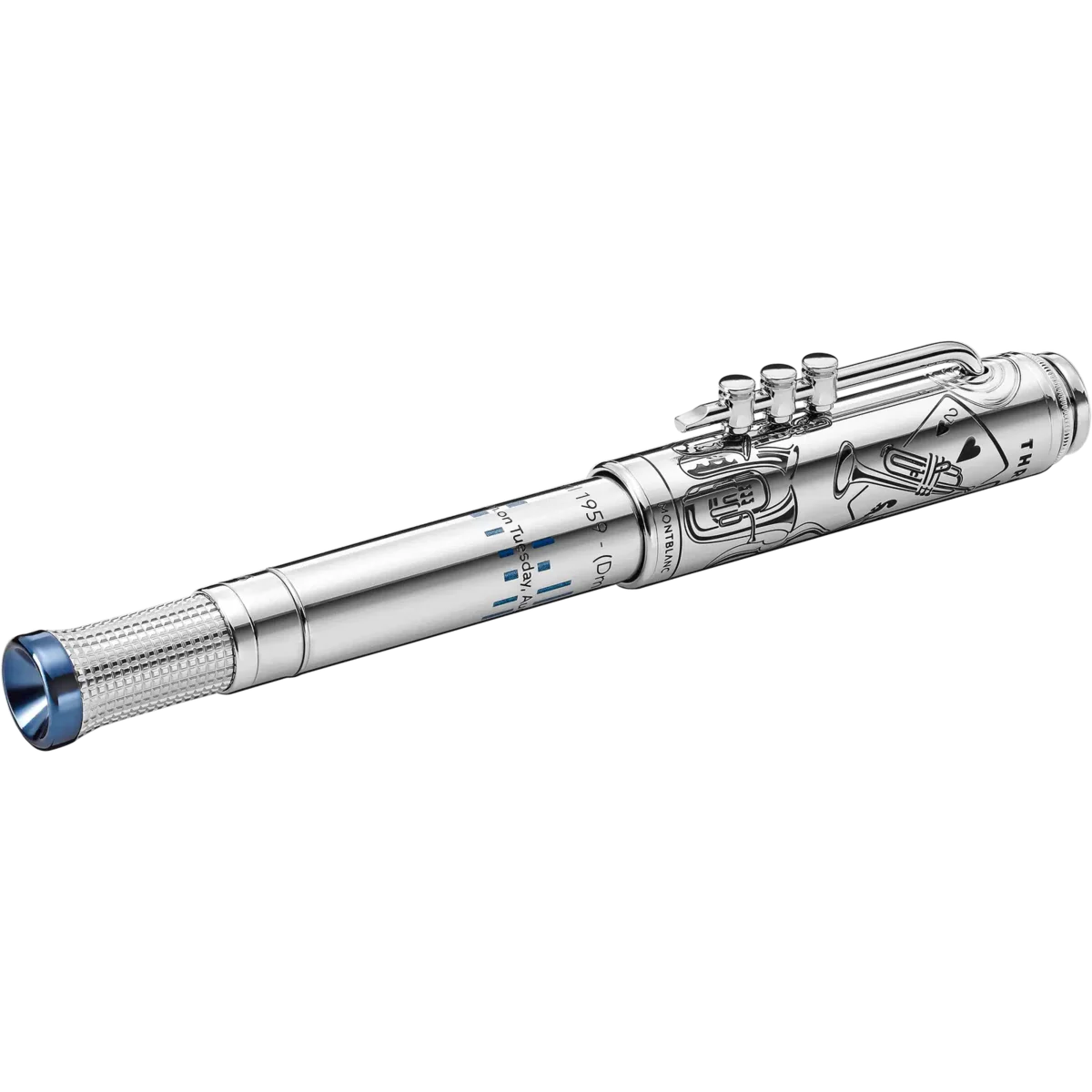 Questa edizione Great Characters rende omaggio a uno dei musicisti jazz più rivoluzionari e influenti di tutti i tempi: Miles Dewey Davis. Non solo era un trombettista dal suono eccezionale, ma anche un pioniere in quasi tutte le fasi dell’evoluzione del jazz americano del dopoguerra, dal cool jazz alla fusione rock-jazz-funk che lo ha portato ad essere inserito nella Rock & Roll Hall of Fame. La forma complessiva della Limited Edition 1926 riflette la tromba, enfatizzata dai pulsanti a forma di ditale sulla clip. L’esclusiva e raffinata incisione sul fusto si ispira alle principali fasi dell’evoluzione del jazz americano del dopoguerra, influenzate da Miles Davis. Il cono blu ricorda “Kind of Blue”, il più grande album jazz di tutti i tempi. La forma del cono deriva dallo speciale bocchino “Heim” che utilizzava per suonare. Il pennino è inciso con la sua silhouette e la tiratura limitata a 1926 pezzi riflette l’anno della sua nascita.