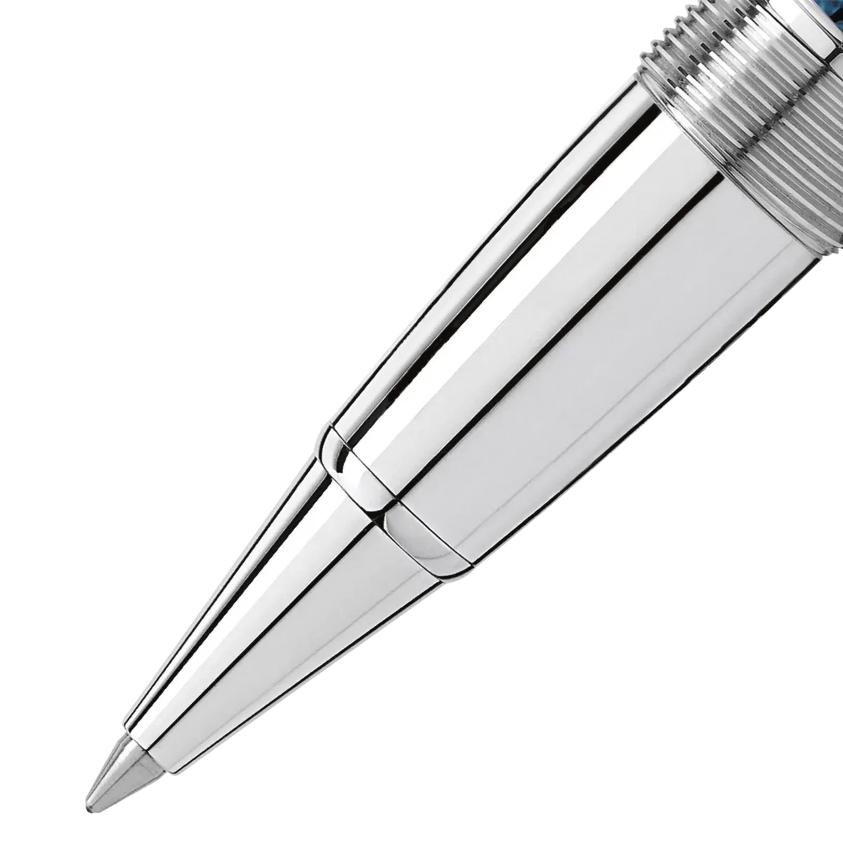 La Meisterstück Solitaire Blue Hour LeGrand si presenta come un prezioso prodotto Solitaire laccato di blu con finiture rivestite in platino. L’ora magica tra la luce del giorno e la notte, la Blue Hour, crea un contrasto morbido e un’atmosfera mozzafiato, che ha ispirato il design. Il motivo esagonale sul fusto e sul cappuccio riflette la rifrazione delle luci e del traffico notturno nelle città urbane.
