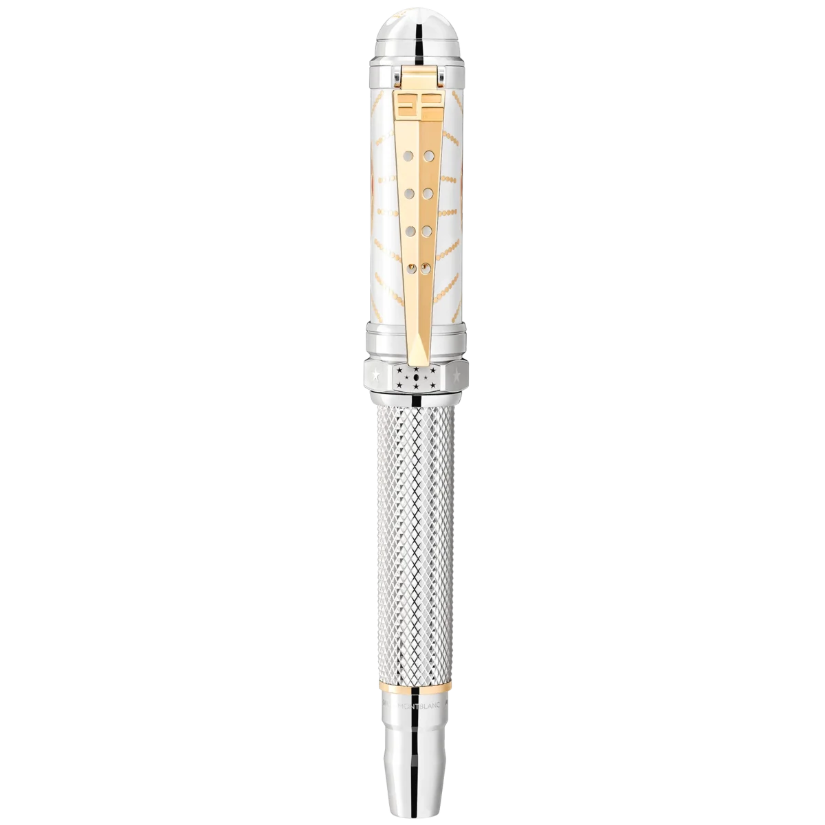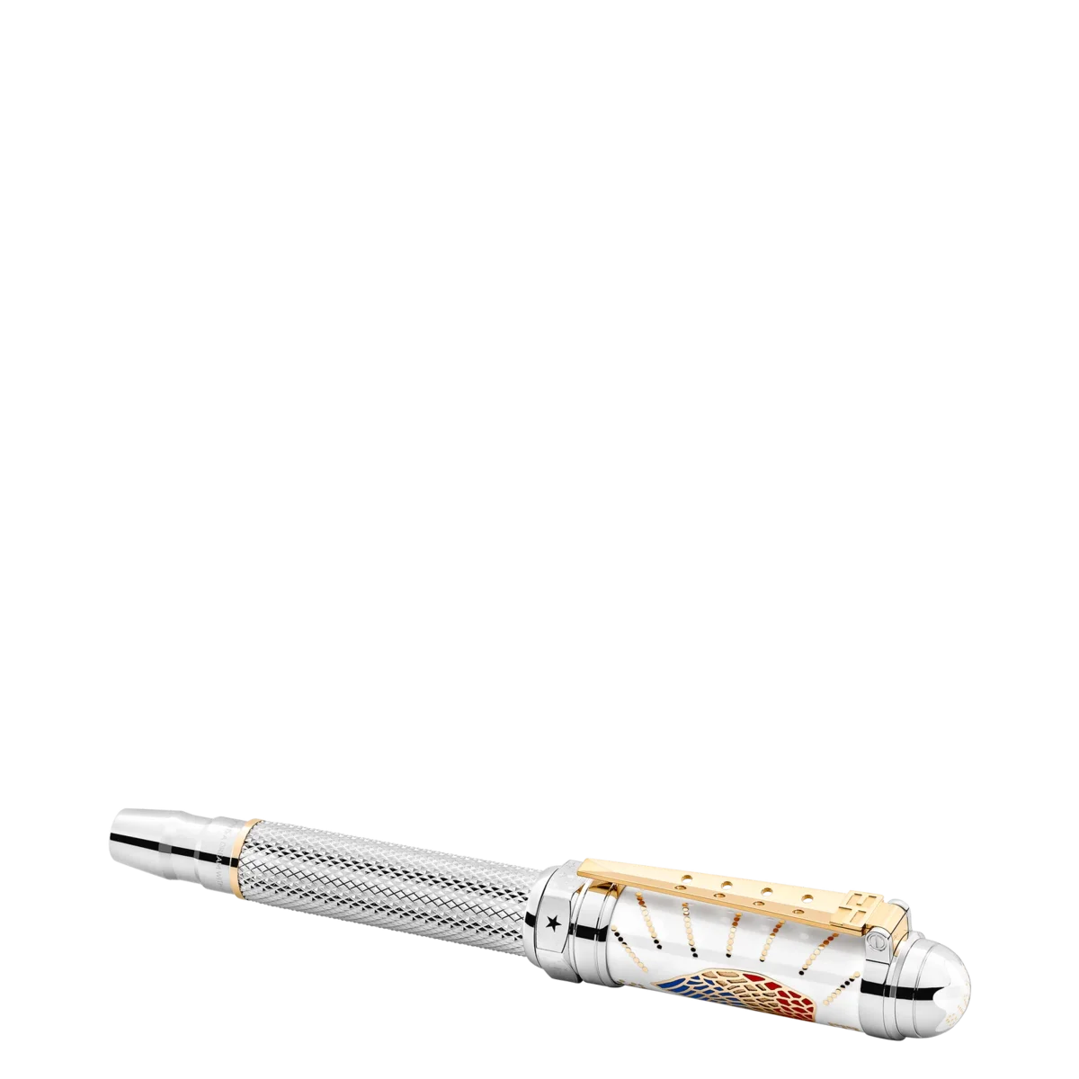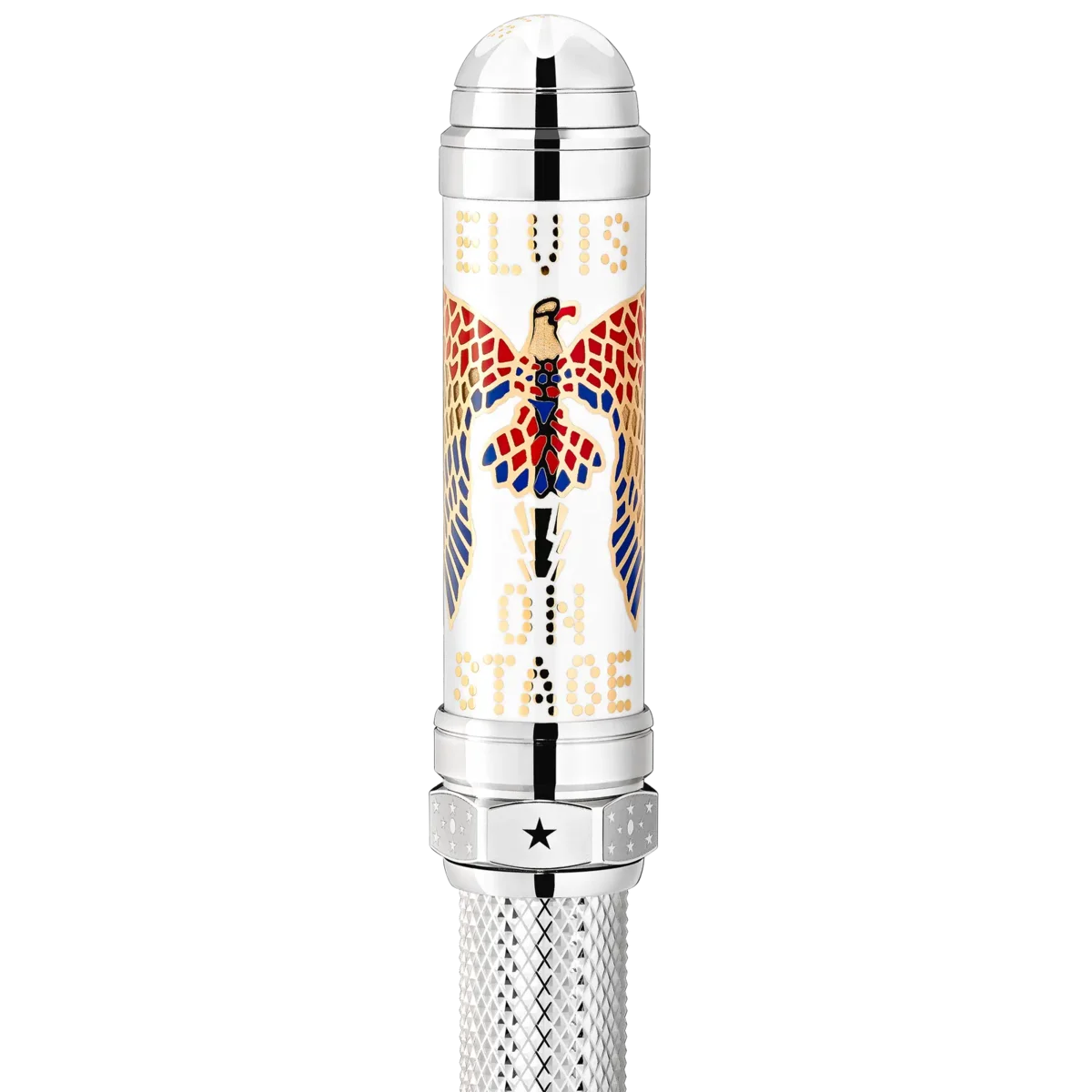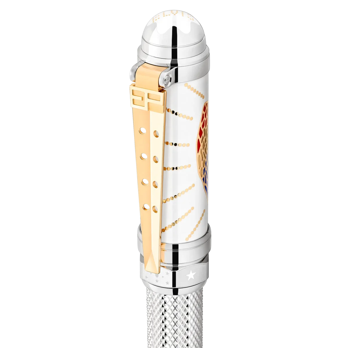 Elvis Presley è ancora considerato una delle icone culturali più significative del XX secolo, il “Re del Rock’n Roll” che ha plasmato una generazione. Nato nel 1935 a Tupelo, nel Mississippi, e trasferitosi a Memphis, nel Tennessee, Elvis Presley è diventato uno dei musicisti più famosi. La forma complessiva dello strumento di scrittura ricorda quella di una candela di accensione di un motore automobilistico, ispirata all’amore di Elvis per i motori V8, così come la forma della clip rivestita in oro. Il motivo sul cappuccio e sul fusto riprende la finitura dell’anello d’oro che indossava durante il concerto “Aloha from Hawaii”. La clip ha una forma a V che deriva dall’amore di Elvis per le Cadillac e il loro motore V8, e la sigla “EP” dai suoi occhiali da sole in stile caratteristico. Identificativo n. MB125508 Peso fisico 94,24 g Dimensioni 146,5 mm * 18,8 mm