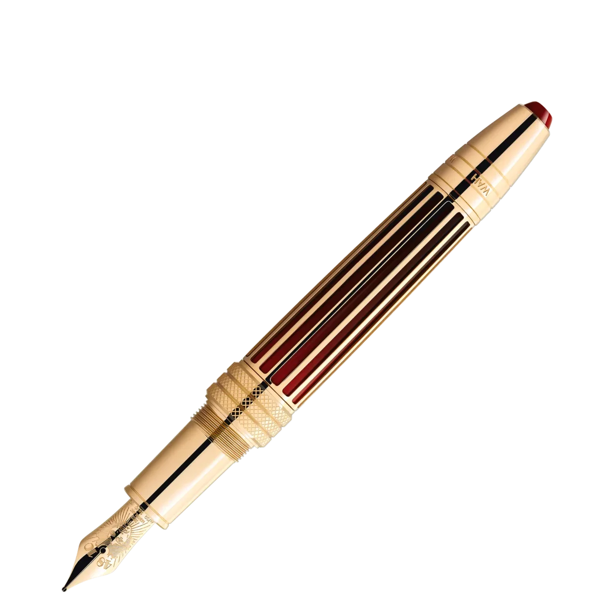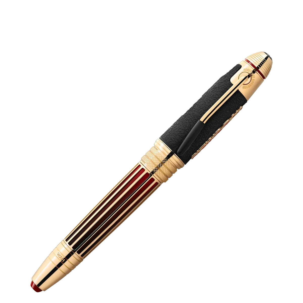 Nel 2022, Montblanc rende omaggio a uno dei musicisti più celebri del XX secolo, considerato uno dei chitarristi elettrici più influenti nella storia della musica popolare: Jimi Hendrix.Ispirato alla copertina dell’album del 1968 “Electric Ladyland”, il fusto di questa edizione limitata 1942 presenta una lacca degradé sostenuta da una sovrapposizione scheletrata. La superficie del cappuccio simboleggia il materiale di un amplificatore utilizzato da Hendrix e presenta un badge laccato. La clip placcata in oro giallo è angolata in modo da assomigliare alla barra del vibrato di una chitarra elettrica. L’emblema Montblanc sulla parte superiore del cappuccio è realizzato in resina pregiata. Un altro dettaglio sorprendente è l’anello del fusto placcato in oro giallo che si ispira a un cavo per chitarra degli anni ’60: su di esso è incisa la data di un famoso concerto di Jimi Hendrix. Il pennino in oro massiccio Au 750 lavorato a mano reca un ritratto di Jimi Hendrix.