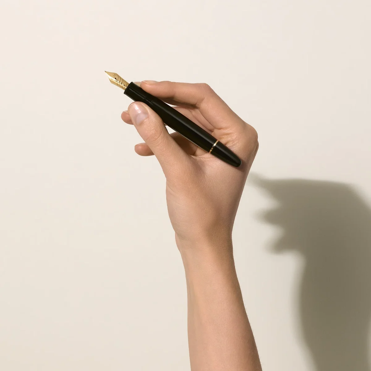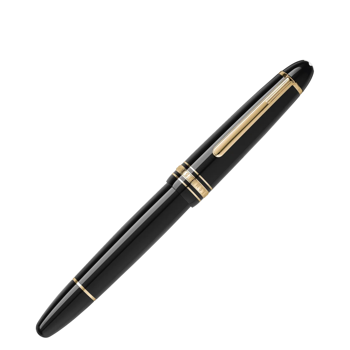 Il cappuccio e il fusto sono realizzati in preziosa resina nera con l’iconico emblema bianco Montblanc intarsiato nella parte superiore del cappuccio. La penna stilografica è impreziosita dall’innovativo pennino curvo, realizzato a mano in oro massiccio Au750 e decorato con tre delicate linee parallele, un simbolo ispirato ai movimenti della calligrafia. Il pennino curvo consente una varietà di stili di scrittura e larghezze di tratto, a seconda dell’angolo e dell’orientamento con cui viene impugnato lo strumento di scrittura.