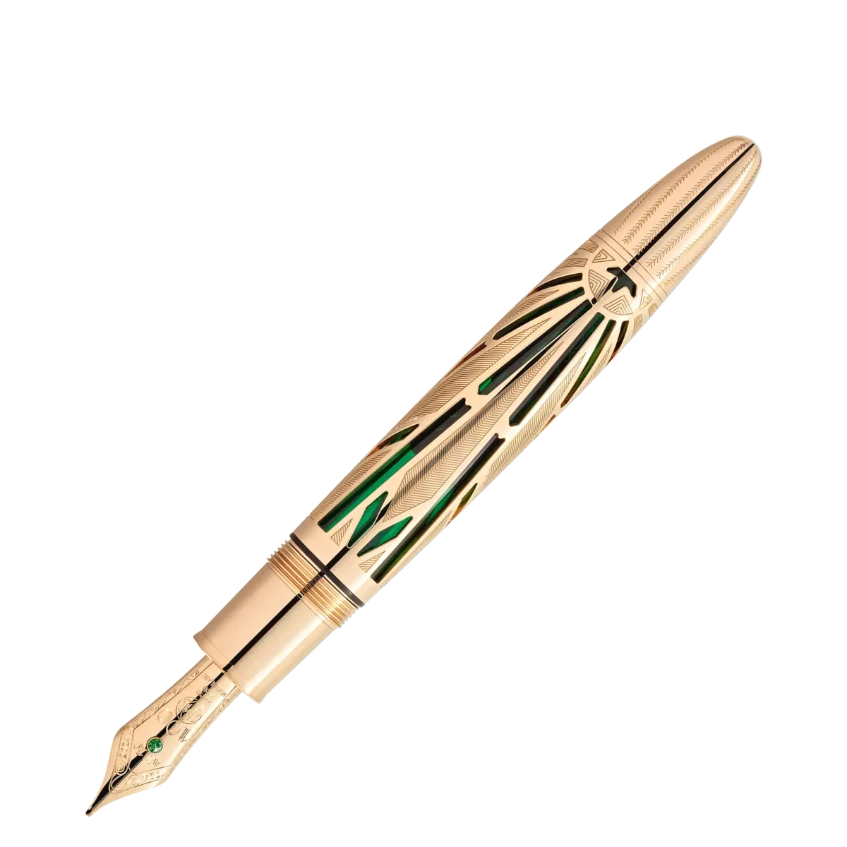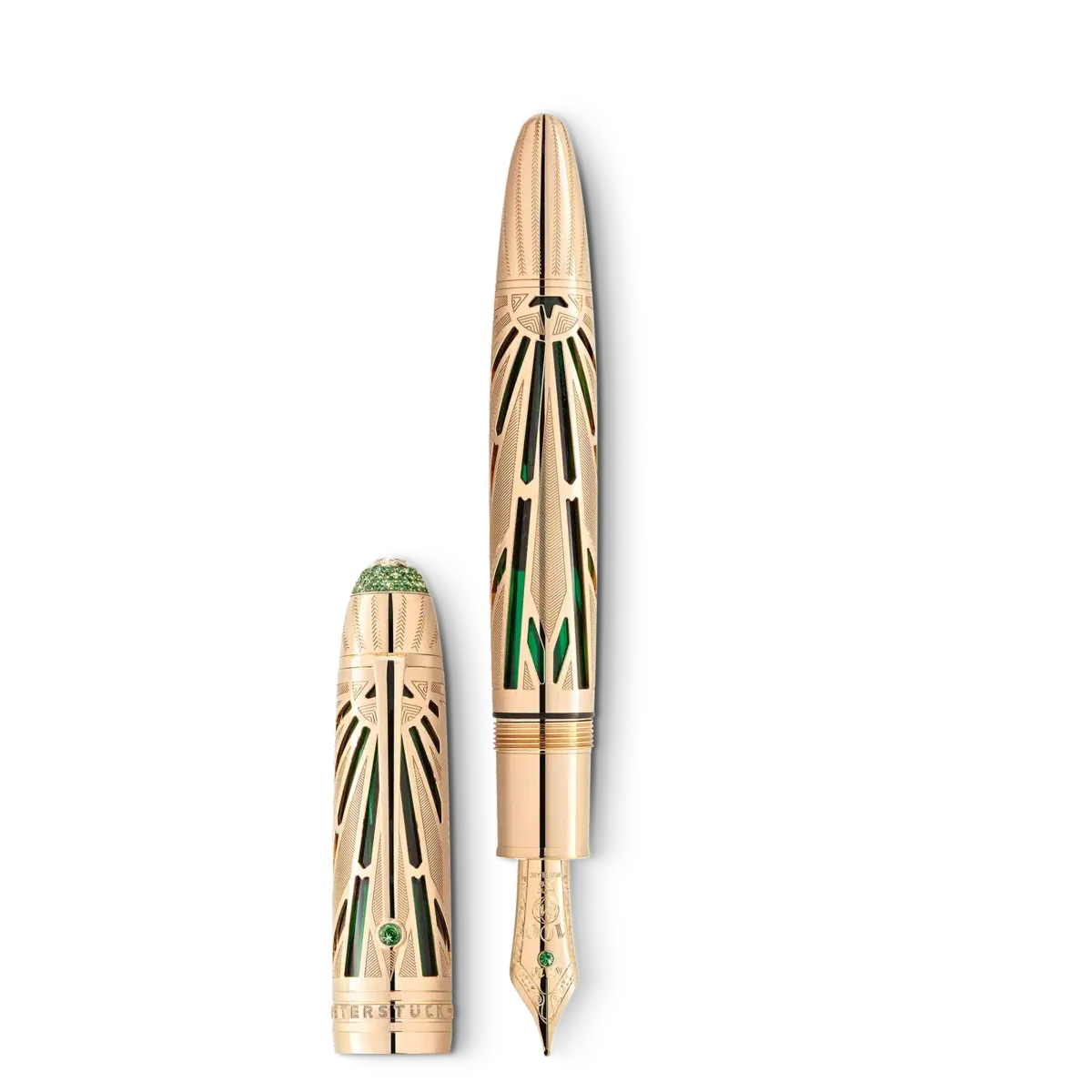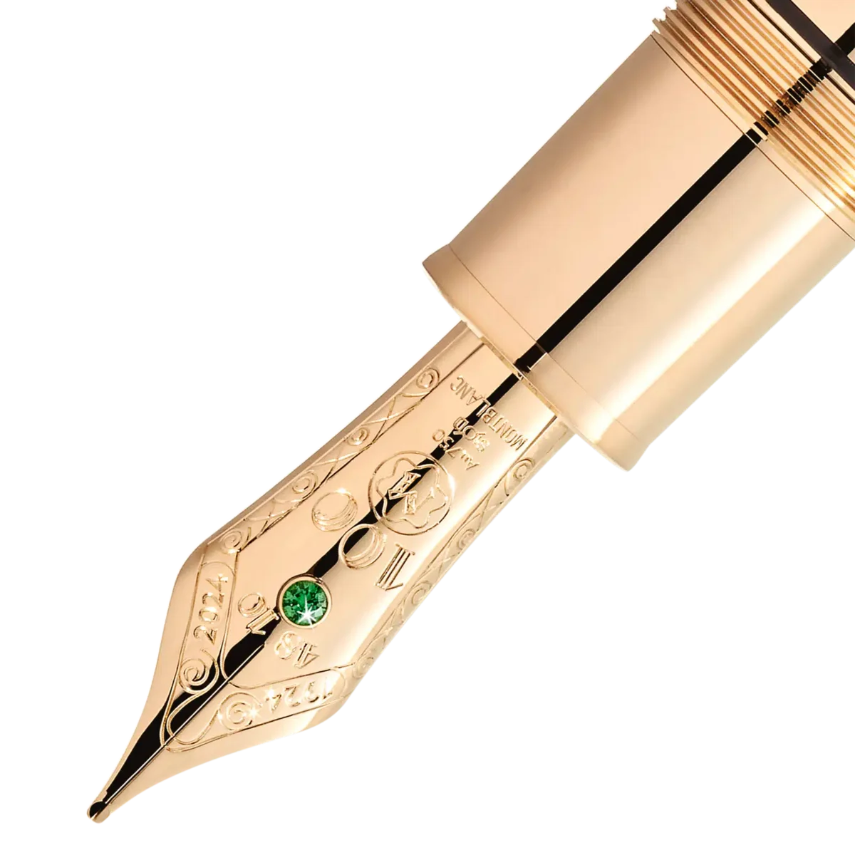 Sin dal suo lancio nel 1924, la Meisterstück di Montblanc è stata ampiamente considerata come lo strumento di scrittura per eccellenza, simbolo di gusto raffinato e audace espressione di sé. Che sia stata utilizzata per scrivere una lettera d’amore o per firmare un documento storico, la Meisterstück ha lasciato un segno indelebile nelle pagine della storia. Per celebrare questo traguardo, Montblanc ha attinto dai propri archivi e ha creato la collezione Meisterstück Origin, rendendo omaggio alla ricca storia e al patrimonio del marchio. La collezione trae ispirazione dai primi disegni presenti nei nostri archivi, nonché dalle caratteristiche di design delle prime edizioni Meisterstück, catturando lo spirito fondante e infondendogli un tocco di modernità. Questa edizione limitata è sapientemente realizzata in oro massiccio Au750 Signature Gold scheletrato con incisioni a mano ispirate ai motivi d’archivio e con un sottofondo traslucido in lacca verde. La clip è un omaggio alle prime forme di clip presenti in alcuni dei primi strumenti di scrittura Meisterstück, evocando un senso di nostalgia. È impreziosita da una tsavorite. Osservando più da vicino, si può scoprire il logo Meisterstück originale, che ha adornato il cappuccio come simbolo di alta qualità sin dal suo inizio. La parte superiore del cappuccio è impreziosita da un diamante taglio Montblanc circondato da tsavoriti di varie dimensioni. Questa edizione giubilare è coronata da un pennino in oro massiccio Au750 con una tsavorite e una speciale incisione a mano, che mostra con orgoglio il numero “100”, insieme agli anni “1924” e “2024”. Brindiamo ad altri 100 anni di eccellenza con Meisterstück!