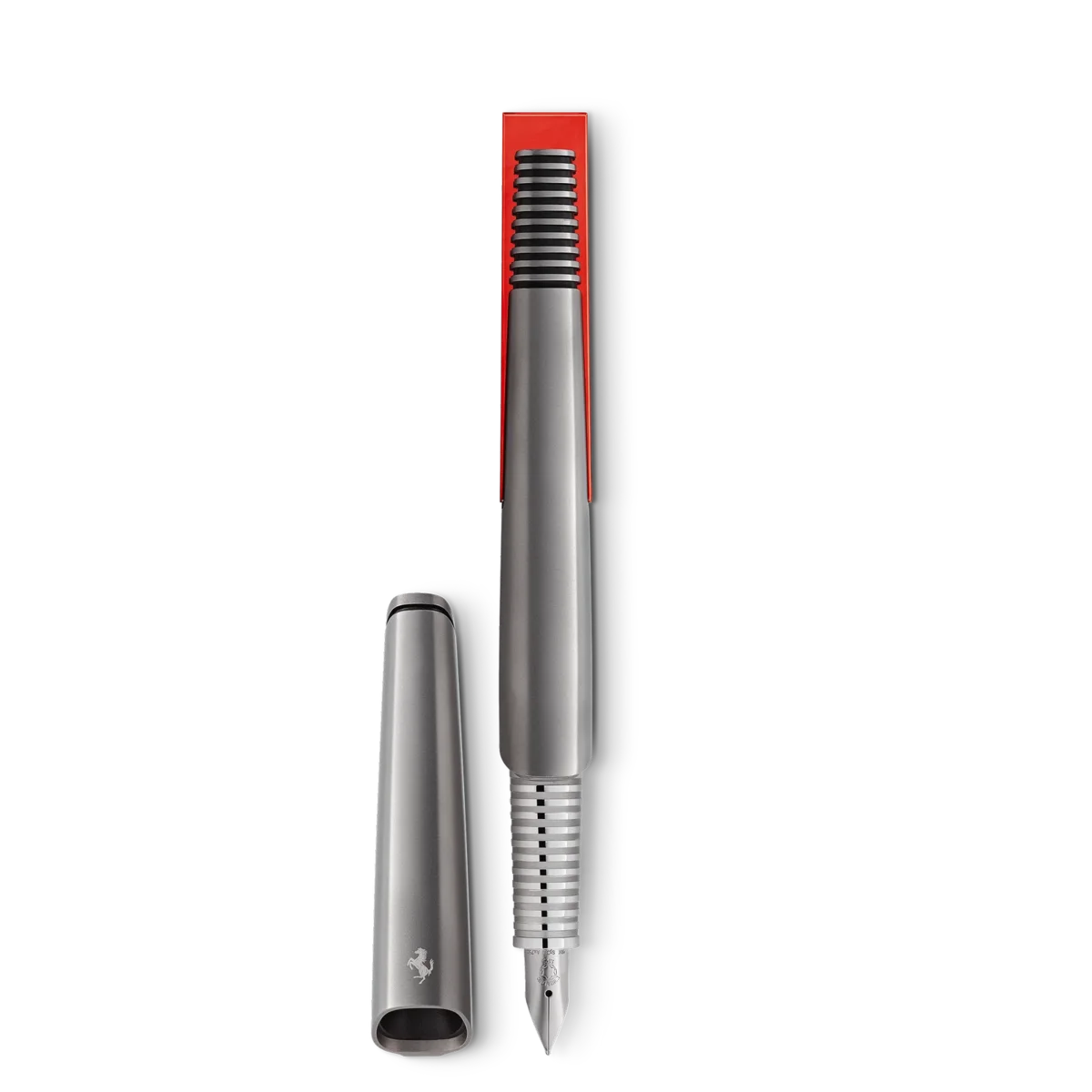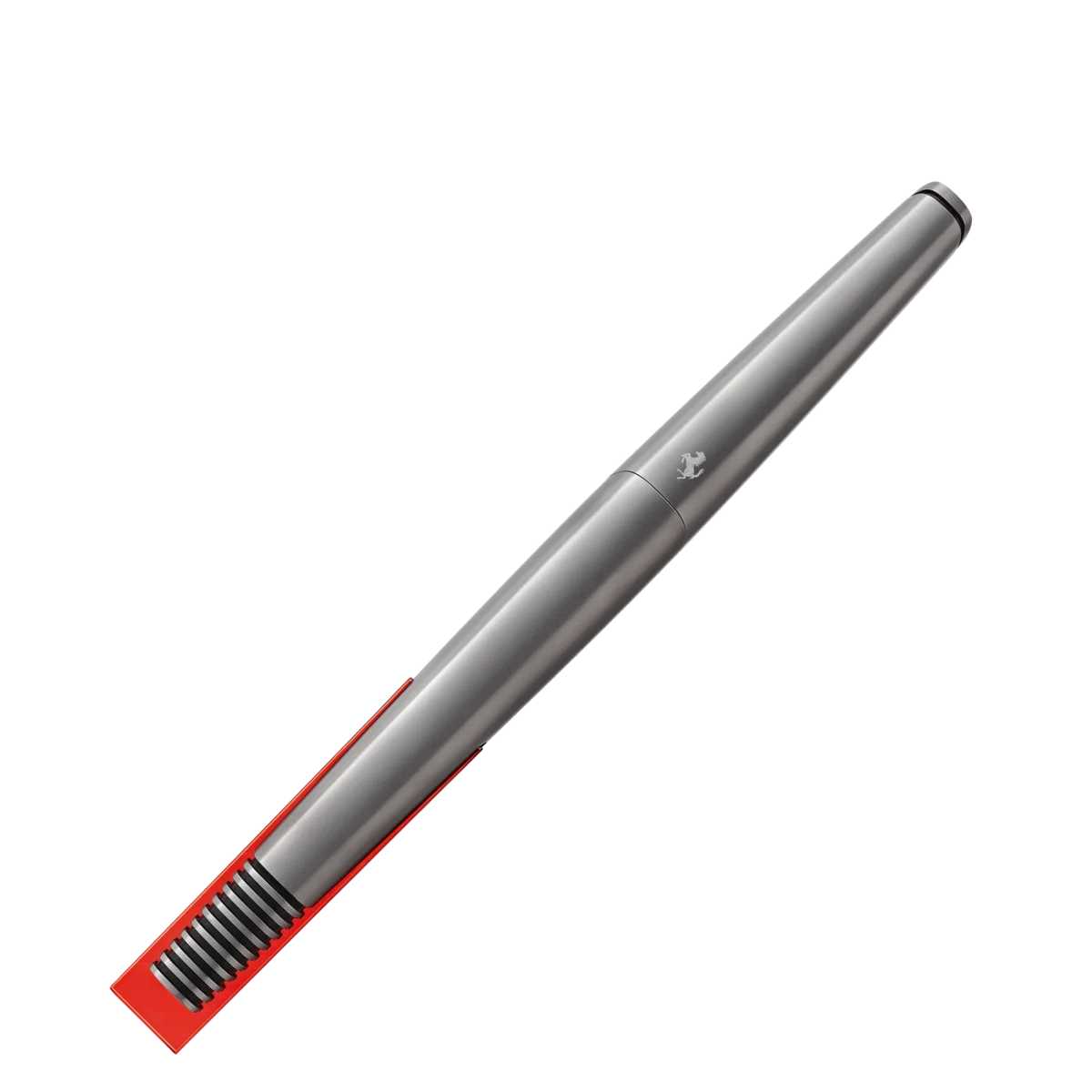 Il team corse della Ferrari conquistò una straordinaria tripletta nella 24 Ore di Daytona del 1967. Questo momento spettacolare viene celebrato nel nuovo modello Daytona SP3, parte della gamma Icona della Ferrari che rende omaggio alla profonda tradizione agonistica dell’azienda. Catturando l’essenza dello spirito della SP3, la Maison ha collaborato con il Centro Stile Ferrari e il Chief Design Officer Flavio Manzoni alla realizzazione della Stilema SP3, una straordinaria estensione del design innovativo. La Montblanc Ferrari Stilema SP3 esprime la forma fluida dell’auto attraverso l’uso di un unico materiale per il cappuccio e il fusto: il titanio leggero, raramente utilizzato negli strumenti di scrittura Montblanc. L’angolo della parte superiore del cappuccio imita il modo in cui il muso della Ferrari Daytona SP3 fende l’aria, mentre gli accenti lineari sulla parte anteriore e sul fusto derivano dalle lame dei paraurti dell’auto, dove le linee creano un gioco visivo di luci e ombre con barre che sembrano scomparire. Incarnando le linee leggere della Ferrari Daytona SP3, questo meccanismo di riempimento dell’inchiostro è stato nascosto sotto una lama rossa semitrasparente che fende il fusto in titanio. Realizzato in oro bianco massiccio per questa edizione, il meccanismo può essere rivelato solo tirando indietro la lama. Una volta che il serbatoio è pieno d’inchiostro e la lama è bloccata in posizione, la Montblanc Ferrari Stilema SP3 è pronta per la linea di partenza e pronta per scrivere. Il pennino in oro bianco massiccio Au750 presenta una speciale incisione “SP3” e l’iconico cavallino rampante Ferrari è inciso al laser sul cappuccio. L’emblema Montblanc che tradizionalmente si trova sulla parte superiore del cappuccio è anch’esso realizzato in oro bianco massiccio Au750. Lo strumento di scrittura è accompagnato da un astuccio appositamente progettato, realizzato in morbida pelle Meisterstück e fodera in Alcantara, con cuciture in contrasto rosso brillante.