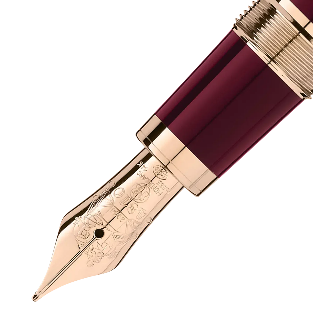 In omaggio a una delle figure più venerate della storia moderna, l’edizione speciale John F. Kennedy fa riferimento simbolico alla vita di J.F. Kennedy in sottili dettagli di design. La preziosa resina color bordeaux rimanda al famoso stile Ivy League di Kennedy e si ispira al periodo trascorso dall’ex presidente all’Università di Harvard. Le sue iniziali “JFK” sono incise sulla caratteristica clip placcata in oro, mentre i tre anelli del cappuccio, che rappresentano i tre fratelli di Kennedy, sono anch’essi placcati in oro. In omaggio alle speranze e ai sogni nazionali incarnati dal progetto preferito di Kennedy, il programma spaziale Apollo, il pennino in oro Au 585 / 14 K lavorato a mano è decorato con il modulo lunare che atterrò sulla Luna nel 1969. L’edizione speciale è coronata dall’emblema Montblanc in resina preziosa. Con oro caratteristico e/o rivestimento in oro caratteristico, Montblanc descrive la tonalità illuminata dell’oro giallo che è diventata una tonalità apprezzata per gli strumenti di scrittura della Maison.