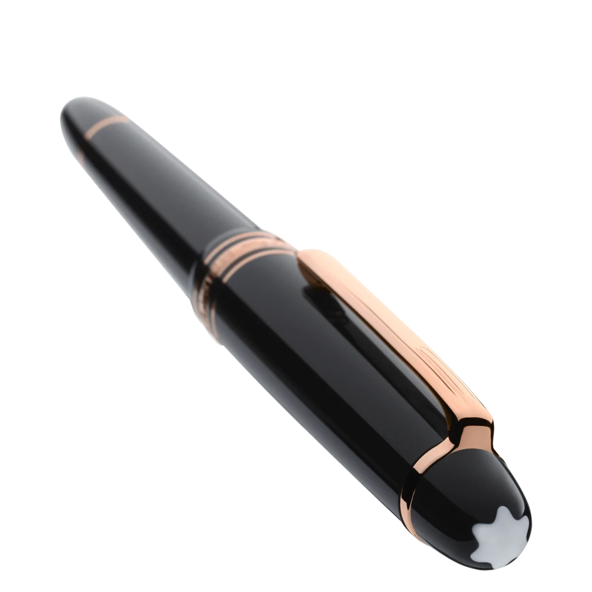 La collezione Meisterstück Classique placcata in oro rosa di Montblanc è un design che scrive la storia. Introdotta nel 1924, Meisterstück, che significa “capolavoro”, è diventata il simbolo della scrittura di lusso di alta qualità. Il cappuccio e il fusto sono realizzati in preziosa resina nera con l’iconico emblema bianco Montblanc intarsiato nella parte superiore del cappuccio. La penna stilografica è impreziosita da un pennino in oro massiccio Au585 lavorato a mano e rivestito in rodio. Identificativo: MB132483VG Dimensioni: 140 mm * 13,7 mm