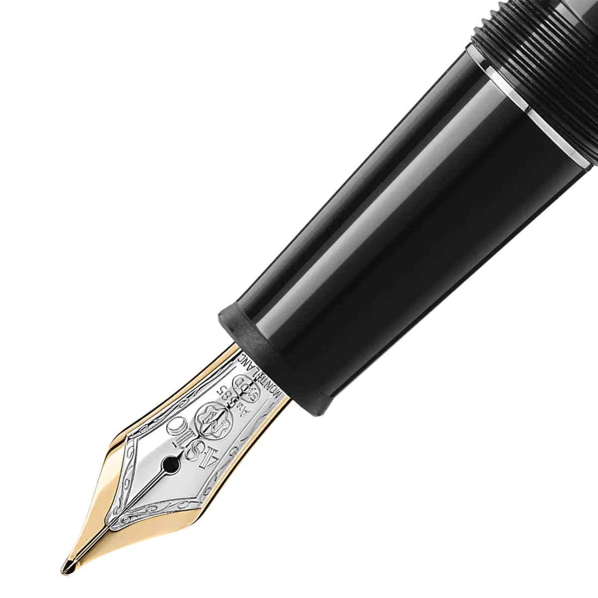 La penna stilografica Meisterstück Classique si evolve in un’icona di design distintiva. Il cappuccio e il fusto sono realizzati in preziosa resina nera con intarsi bianchi dell’emblema Montblanc. Tre anelli placcati in platino con la scritta Montblanc in rilievo, una clip placcata in platino e un pennino in oro lavorato a mano sottolineano il design intramontabile di questa iconica penna stilografica. Per esprimere la tua personalità, Montblanc offre un servizio gratuito di incisione di nomi o iniziali.