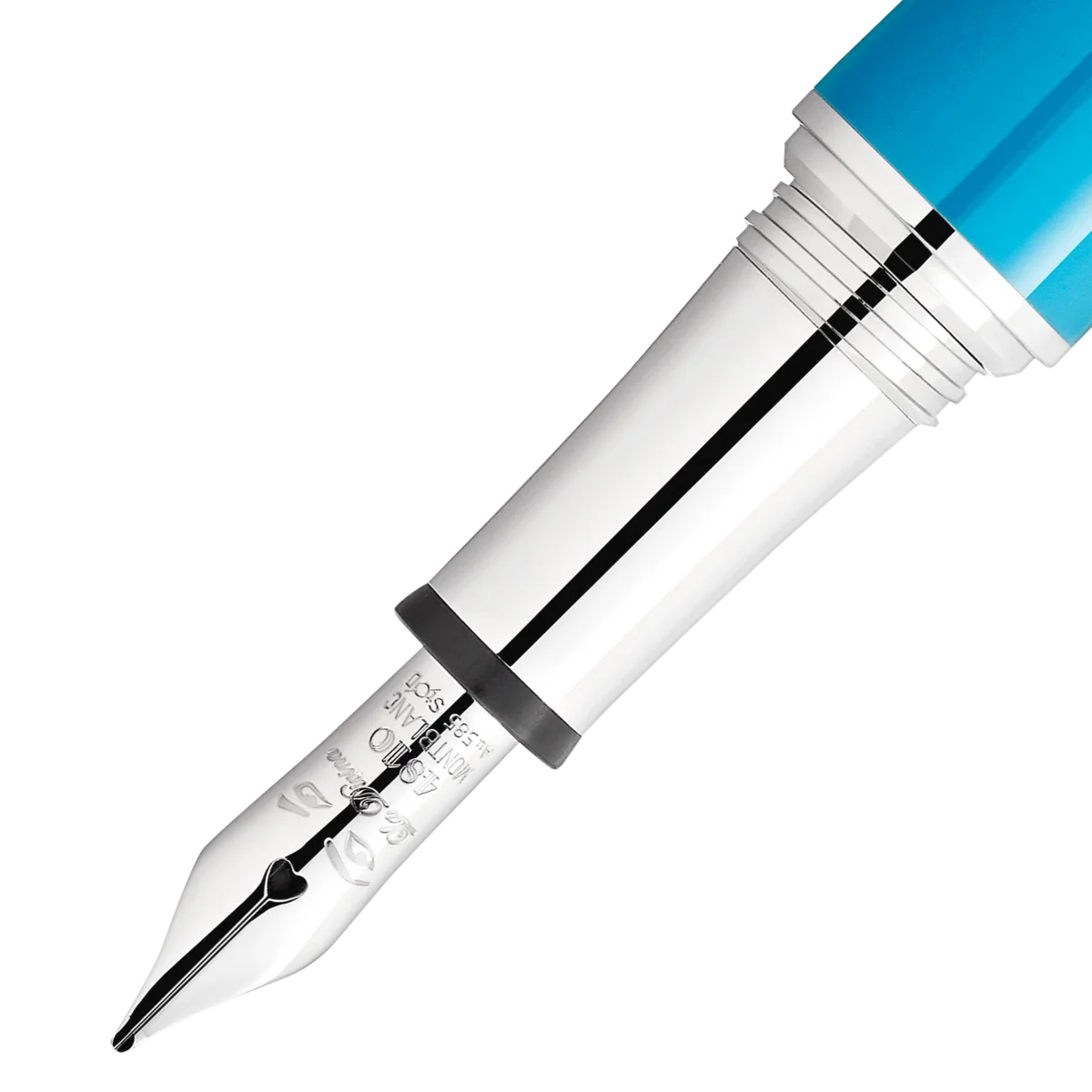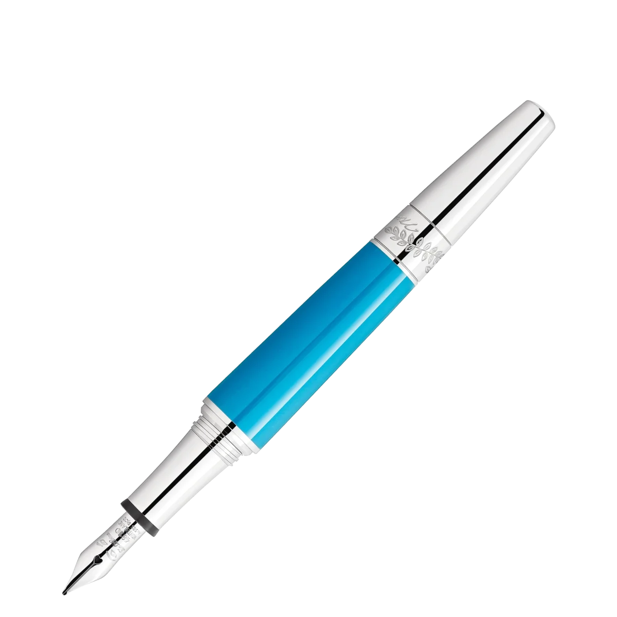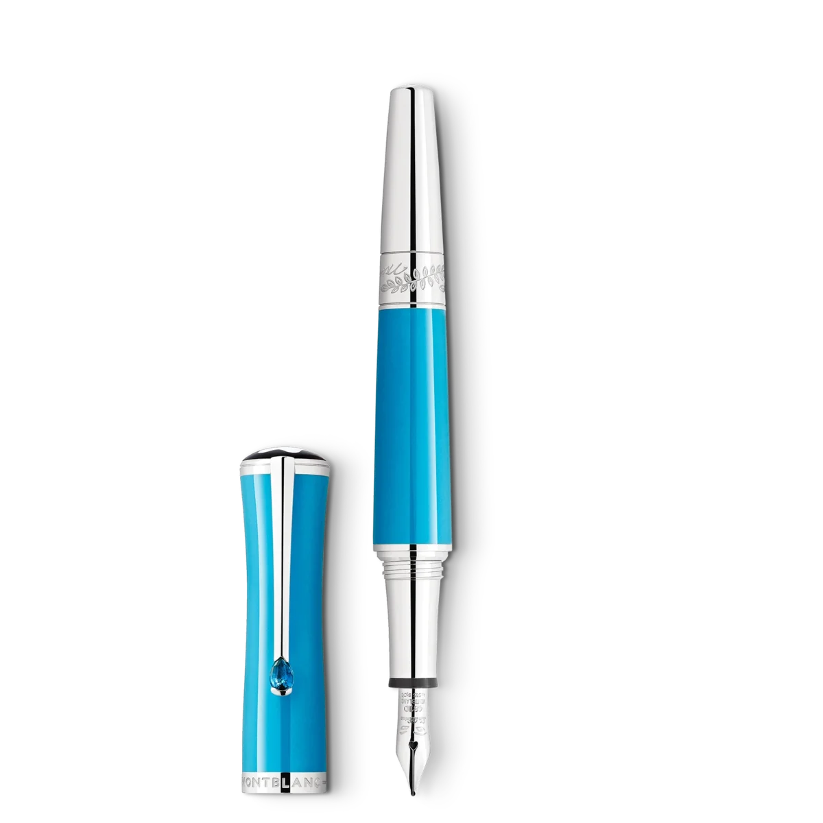 La Montblanc Maria Callas Special Edition Turquoise-Coloured è dedicata a una delle soprano più carismatiche del XX secolo e apprezzata icona di stile. Con il suo talento, la sua passione e la sua personalità, incarnava un certo ideale di diva dell’opera. In alcuni dei più grandi teatri lirici del mondo, dalla Scala di Milano all’Opéra di Parigi e al Metropolitan Opera di New York, era conosciuta come “La Divina”. L’edizione mette in risalto uno dei suoi colori preferiti, il turchese, nella preziosa resina del cappuccio e del fusto, riflettendo al contempo la graziosa bellezza di Maria Callas nella sua silhouette slanciata ed elegante. In ricordo della sua patria greca circondata dal mare, la clip rivestita in platino è decorata con una pietra il cui colore ricorda il radioso blu turchese del Mar Egeo. Un dettaglio del costume di uno dei suoi ruoli belcantistici più riconoscibili, la “Norma” di Bellini, si riflette in un motivo di foglie di alloro che circondano il cono rivestito in platino dell’edizione insieme alla firma in rilievo della celebre soprano. Il pennino in oro massiccio Au 585 lavorato a mano e rivestito in rodio è decorato con gli occhi da gatto contornati di kohl, così tipici della sua immagine, e con il nome che è indissolubilmente legato a Maria Callas: “La Divina”.