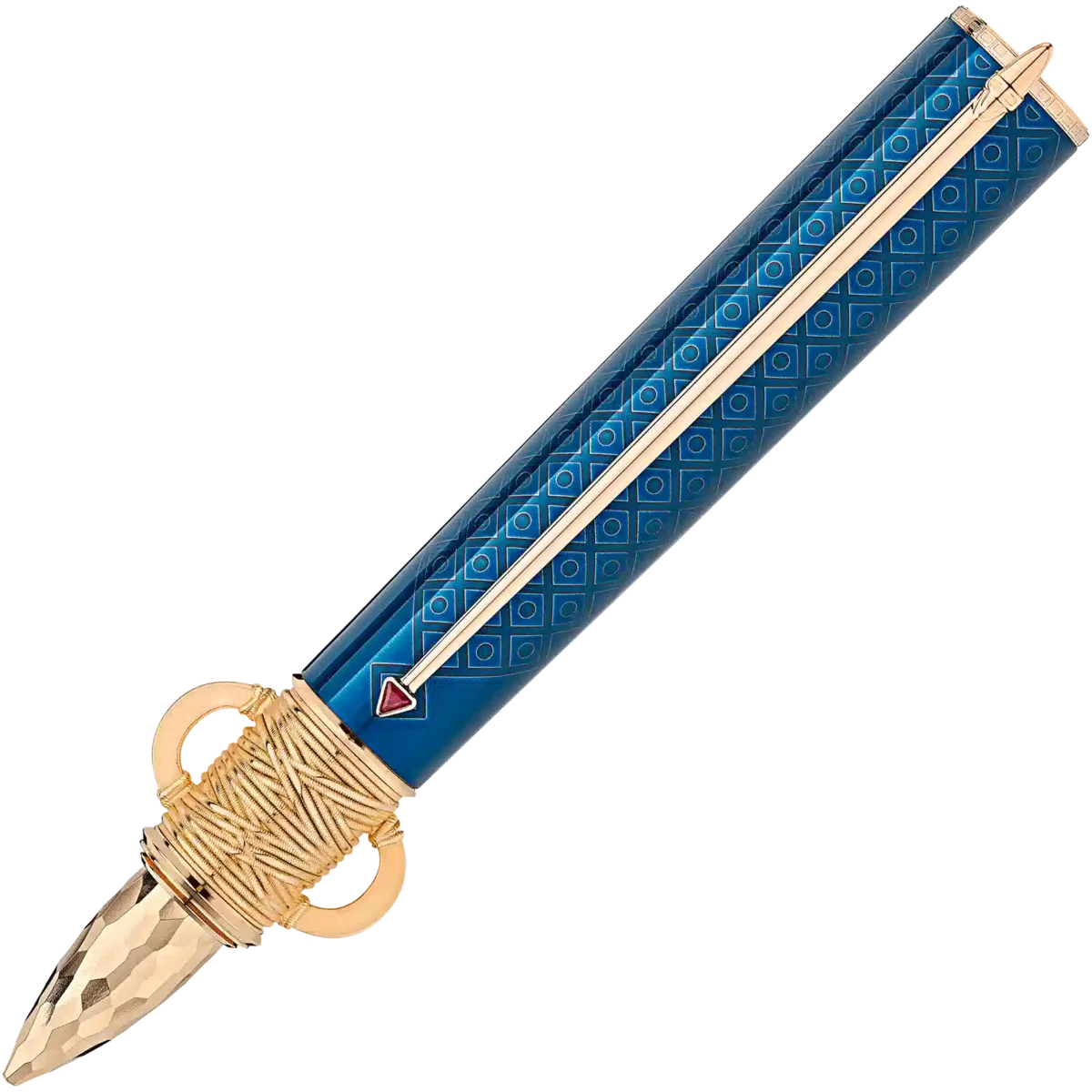 Moctezuma I fu incoronato sovrano del grande Impero Azteco nel 1440, inaugurando così l’età dell’oro degli Aztechi. Durante il suo regno, plasmò l’immagine dello Stato azteco che conosciamo oggi, uno Stato ricco di cultura e mitologia. La capitale Tenochtitlán, l’odierna Città del Messico, fiorì sotto il suo governo. La Montblanc Patron of Art Homage to Moctezuma I Limited Edition 4810 con finiture placcate in oro è dedicata a questo sovrano supremo di una delle culture più speciali della storia mondiale. Il design complessivo si ispira all’atlatl, un dispositivo azteco per il lancio delle lance. La forma del cono, rifinita con una finitura martellata, si basa su un coltello sacrificale azteco con lama in ossidiana. I colori della lacca – petrolio e rosso carminio – si ispirano ai colori del mantello reale. I due geroglifici che decorano il cappuccio simboleggiano gli anni del regno di Moctezuma I. Il pennino in oro massiccio Au 750 lavorato a mano è impreziosito da una raffinata incisione ispirata al glifo azteco della città di Tenochtitlán: un cactus a tre bracci con un diadema reale e due volute.
