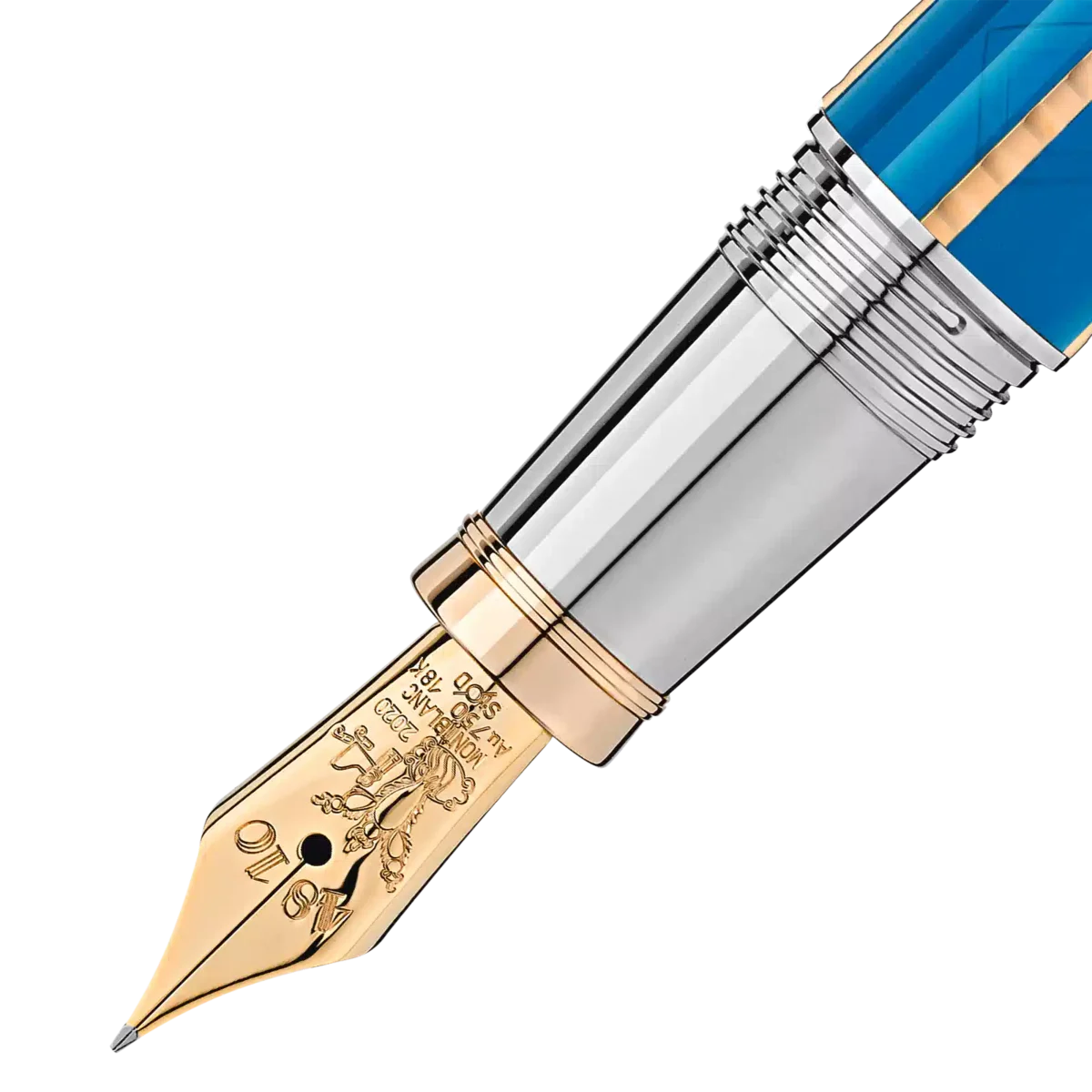 Moctezuma I fu incoronato sovrano del grande Impero Azteco nel 1440, inaugurando così l’età dell’oro degli Aztechi. Durante il suo regno, plasmò l’immagine dello Stato azteco che conosciamo oggi, uno Stato ricco di cultura e mitologia. La capitale Tenochtitlán, l’odierna Città del Messico, fiorì sotto il suo governo. La Montblanc Patron of Art Homage to Moctezuma I Limited Edition 4810 con finiture placcate in oro è dedicata a questo sovrano supremo di una delle culture più speciali della storia mondiale. Il design complessivo si ispira all’atlatl, un dispositivo azteco per il lancio delle lance. La forma del cono, rifinita con una finitura martellata, si basa su un coltello sacrificale azteco con lama in ossidiana. I colori della lacca – turchese e rosso carminio – si ispirano ai colori del mantello reale. Intarsi in lacca ispirati a segni e ornamenti tradizionali coronano il cappuccio. Il pennino in oro massiccio Au 750 lavorato a mano è decorato con una raffinata incisione ispirata al glifo azteco della città di Tenochtitlán: un cactus a tre bracci con un diadema reale e due volute.