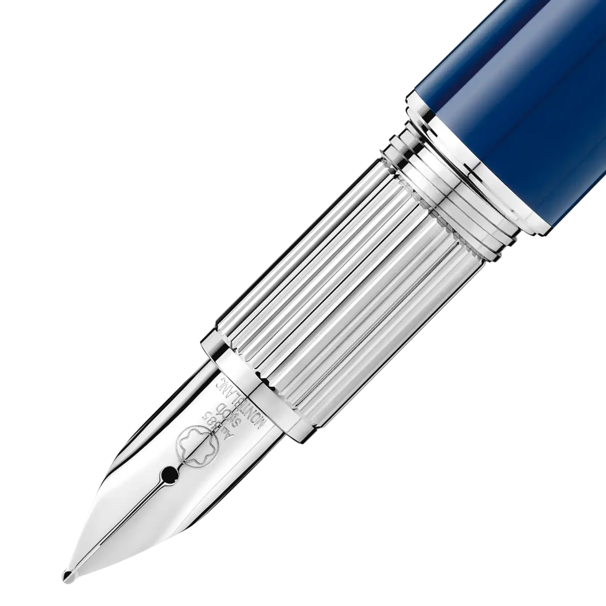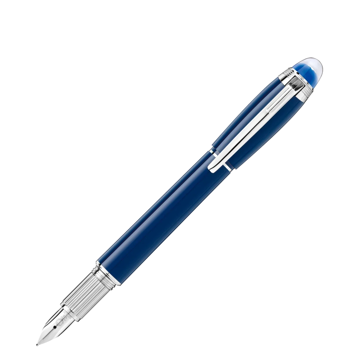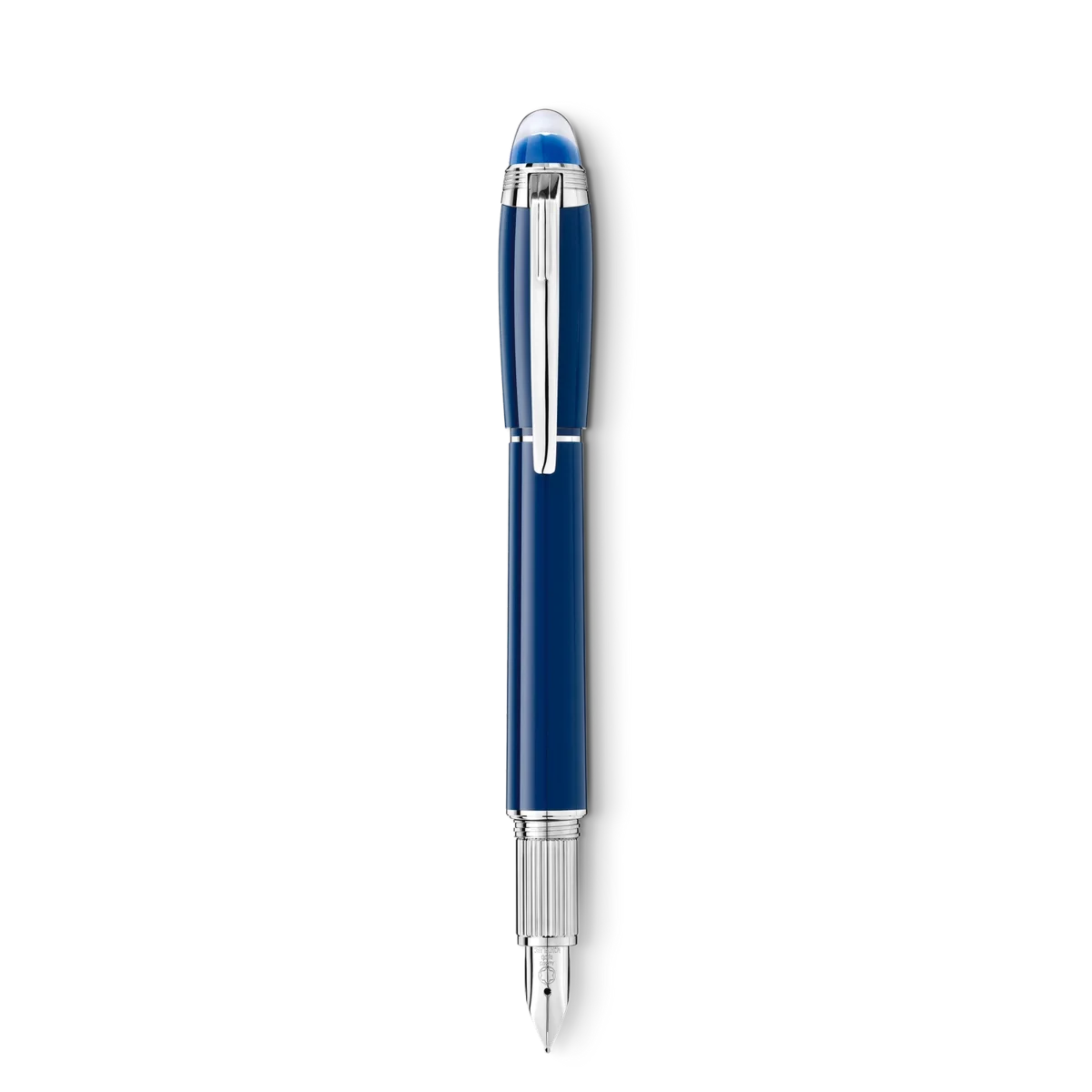 StarWalker Blue Planet racconta il viaggio tra le stelle, l’esplorazione del cosmo e delle galassie lontane, e la partecipazione a una delle avventure più misteriose e potenti che l’umanità abbia mai intrapreso: l’esplorazione spaziale. Ingrandendo il nostro pianeta Terra, traiamo ispirazione dall’acqua, fonte di vita. La tecnologia dell’emblema StarWalker presenta una cupola blu traslucida con una stella che galleggia sulla sommità, che rappresenta la Terra che emerge sopra l’orizzonte lunare vista dalla luna. La StarWalker Precious Resin è dotata di finiture rivestite in platino e di un fusto e un cappuccio in resina preziosa blu. La penna stilografica è realizzata a mano con pennino in oro Au585 / 14K rivestito in rodio.