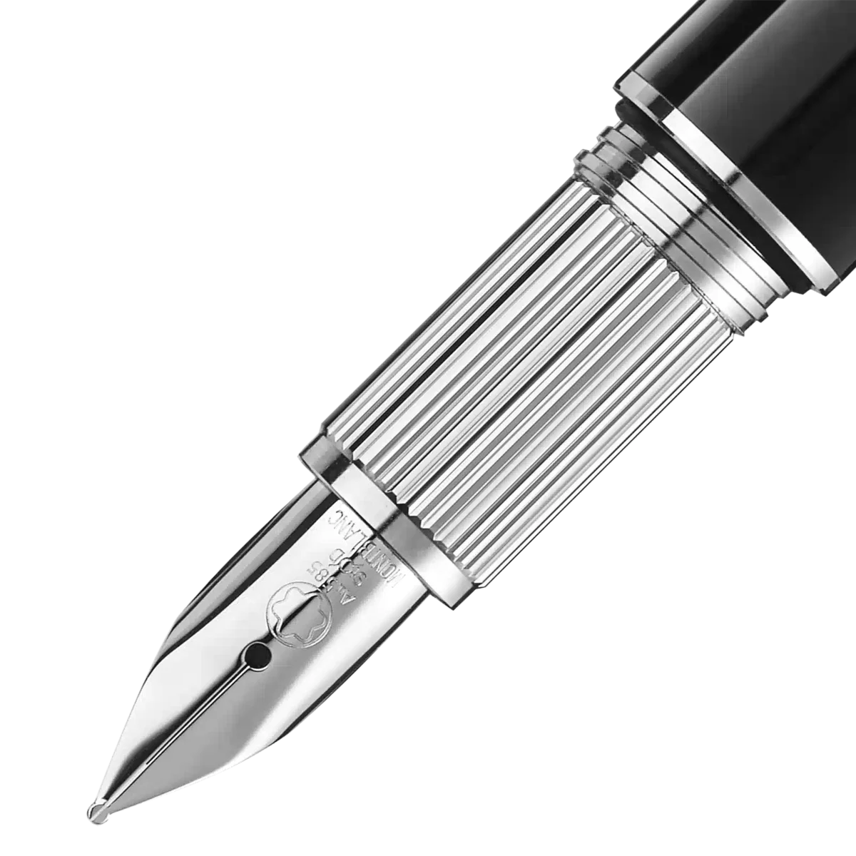 La nuova StarWalker è dedicata al viaggio tra le stelle. È dedicata all’esplorazione del cosmo e delle galassie lontane. È dedicata a una delle avventure più misteriose e affascinanti dell’umanità: l’esplorazione spaziale. Il nuovo design della collezione celebra l’immensa emozione, descritta da tutti i viaggiatori spaziali, di vedere il nostro pianeta blu fluttuare nella vastità dello spazio. La tecnologia dell’emblema StarWalker presenta una cupola blu traslucida sotto l’emblema Montblanc, che ricorda la Terra che emerge sopra l’orizzonte lunare. La StarWalker Doué è dotata di cappuccio e finiture rivestiti in platino e corpo in resina nera pregiata. La penna stilografica è realizzata a mano con pennino in oro Au585 /14 K rivestito in rodio.