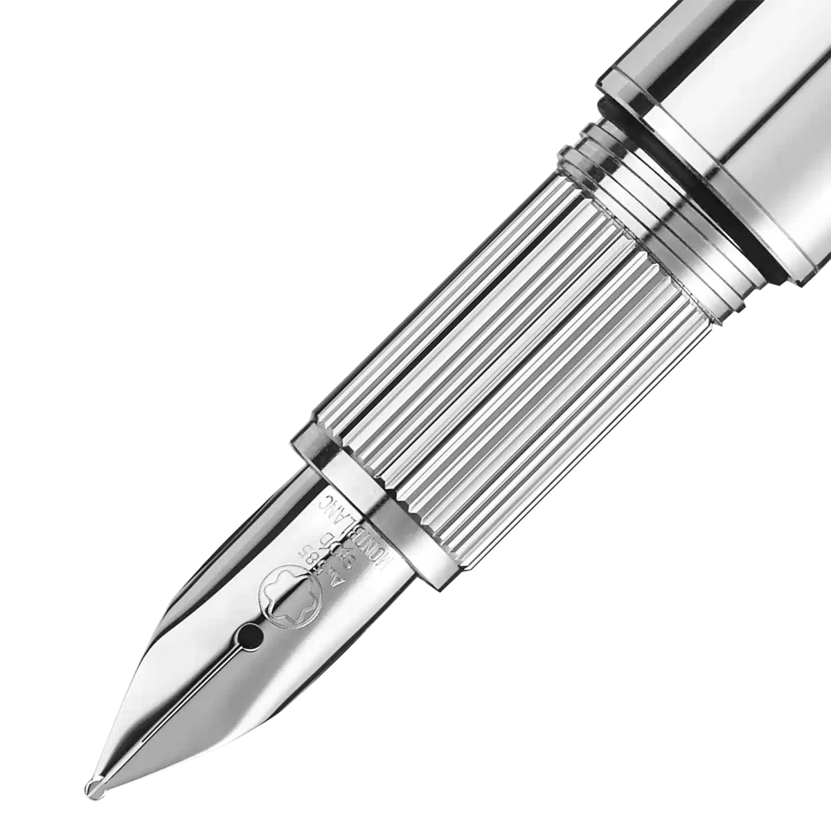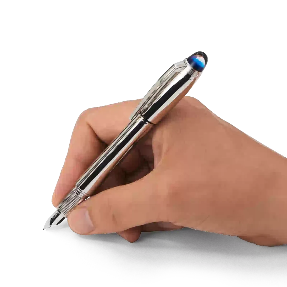La nuova StarWalker è dedicata al viaggio tra le stelle. È dedicata all’esplorazione del cosmo e delle galassie lontane. È dedicata a una delle avventure più misteriose e affascinanti dell’umanità: l’esplorazione spaziale. Il nuovo design della collezione celebra l’immensa emozione, descritta da tutti i viaggiatori spaziali, di vedere il nostro pianeta blu fluttuare nella vastità dello spazio. La tecnologia dell’emblema StarWalker presenta una cupola blu traslucida sotto l’emblema Montblanc, che ricorda la Terra che emerge sopra l’orizzonte lunare. La StarWalker Metal è dotata di cappuccio, finiture e corpo rivestiti in platino. La penna stilografica è realizzata a mano con pennino in oro Au585 /14 K rivestito in rodio.