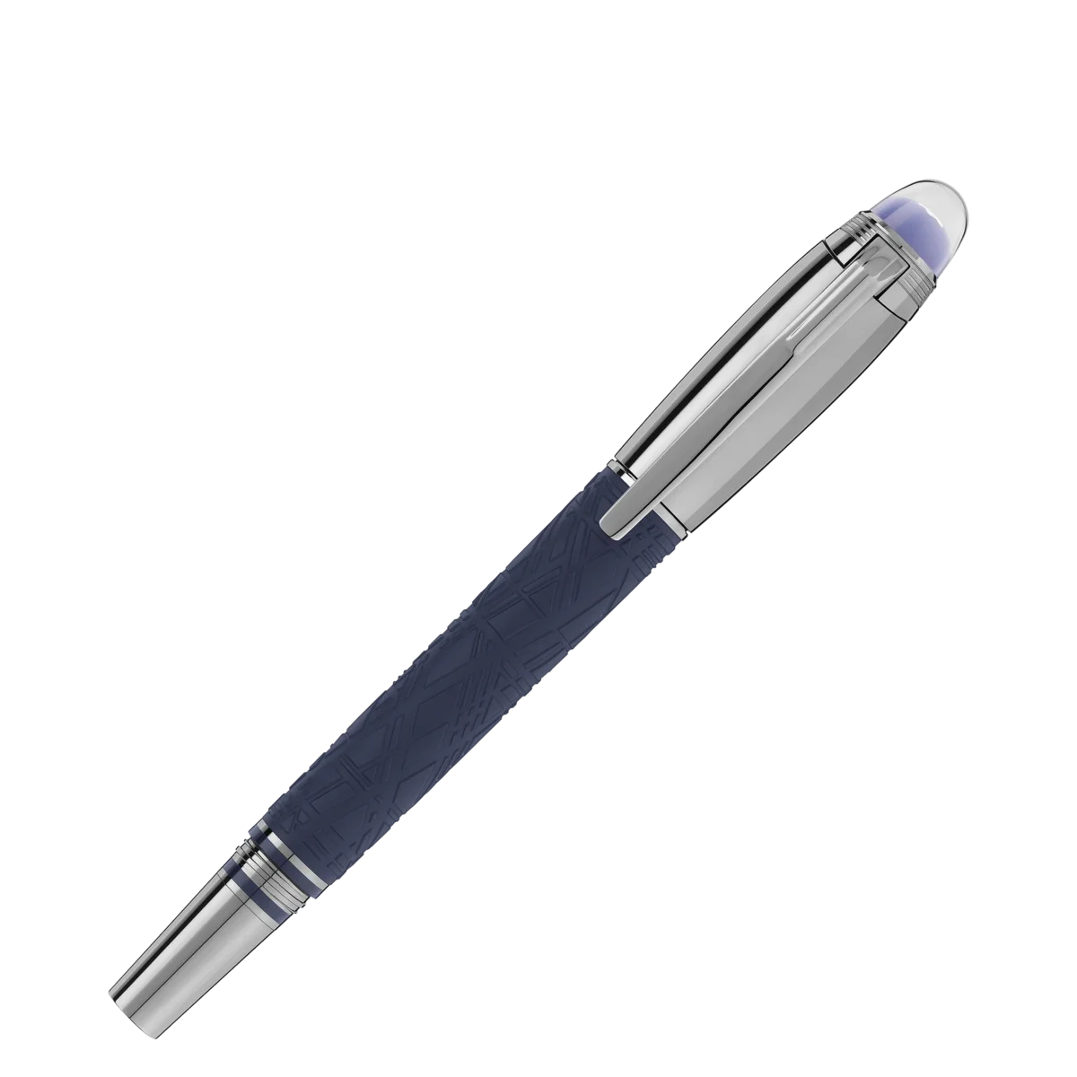 StarWalker SpaceBlue guarda oltre il pianeta Terra e si rivolge alle stelle e alla galassia. Questa nuova collezione StarWalker conferisce un nuovo look al fusto in resina, con un design che richiama le intricate strutture del motivo Widmanstätten, una delle creazioni più ipnotiche della natura. Il cappuccio e le finiture in metallo sono rivestiti in rutenio scuro, accompagnati da una tonalità blu spazio profondo per la preziosa resina opaca, che ricorda le sfumature di un cielo stellato. Inoltre, il sottodomo sulla parte superiore del cappuccio, su cui galleggia l’emblema Montblanc, è disponibile in un colore blu spazio profondo. La penna stilografica è realizzata a mano con pennino in oro Au585 rivestito in rutenio.