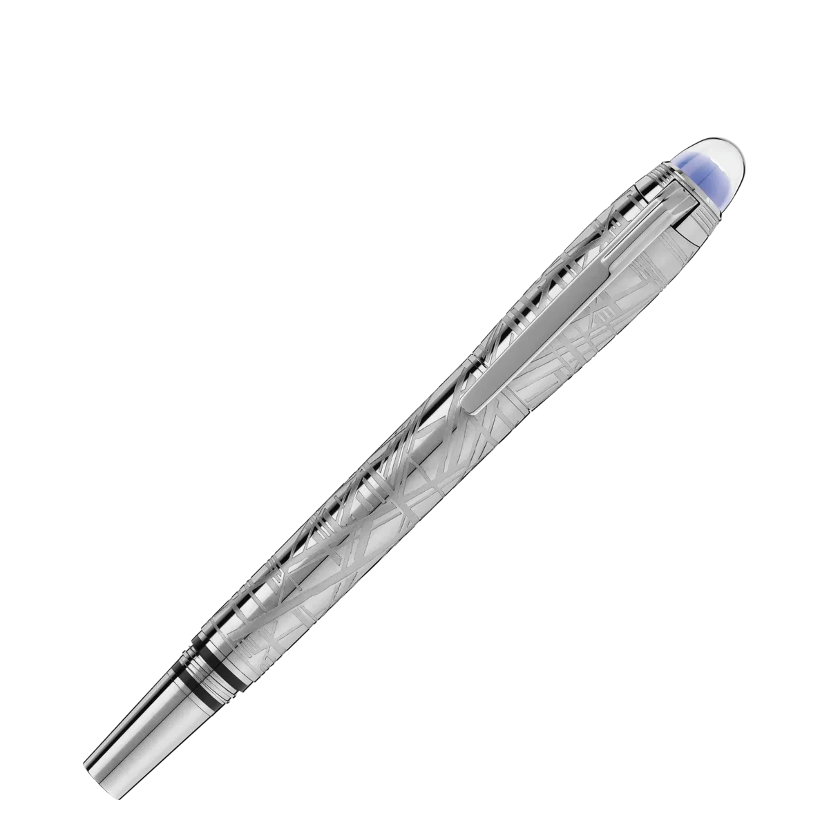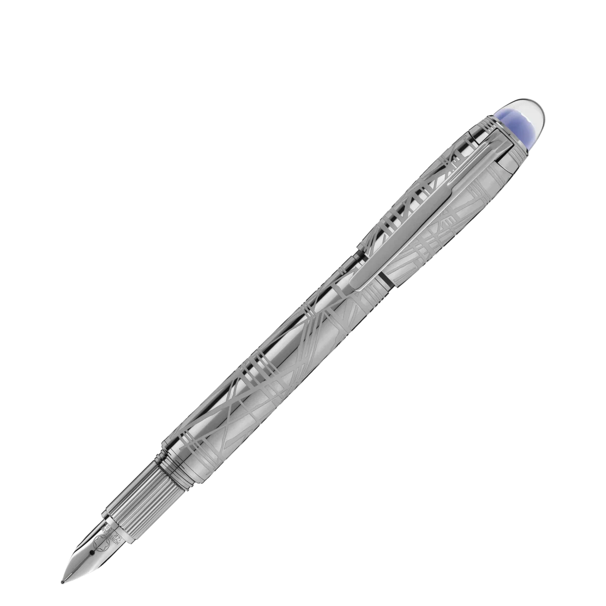 StarWalker SpaceBlue guarda oltre il pianeta Terra e si rivolge alle stelle e alla galassia. Questa nuova collezione StarWalker conferisce un nuovo look al cappuccio e al fusto in metallo, con un design che richiama le intricate strutture del motivo Widmanstätten, una delle creazioni più ipnotiche della natura. Tutte le parti metalliche sono rivestite in rutenio scuro, accompagnate da un sottodomo blu spazio profondo sulla parte superiore del cappuccio, che ricorda le tonalità di un cielo stellato, su cui fluttua l’emblema Montblanc. La penna stilografica è realizzata a mano con pennino in oro Au 585 rivestito in rutenio.