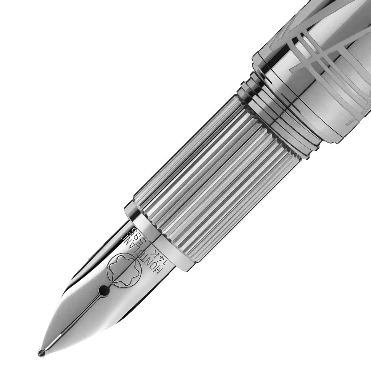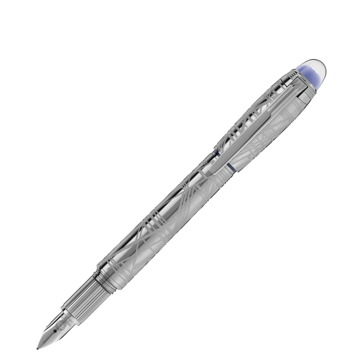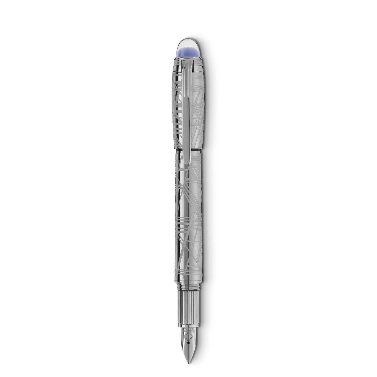 StarWalker SpaceBlue guarda oltre il pianeta Terra e si rivolge alle stelle e alla galassia. Questa nuova collezione StarWalker conferisce un nuovo look al cappuccio e al fusto in metallo, con un design che richiama le intricate strutture del motivo Widmanstätten, una delle creazioni più ipnotiche della natura. Tutte le parti metalliche sono rivestite in rutenio scuro, accompagnate da un sottodomo blu spazio profondo sulla parte superiore del cappuccio, che ricorda le tonalità di un cielo stellato, su cui fluttua l’emblema Montblanc. La penna stilografica è realizzata a mano con pennino in oro Au 585 rivestito in rutenio.