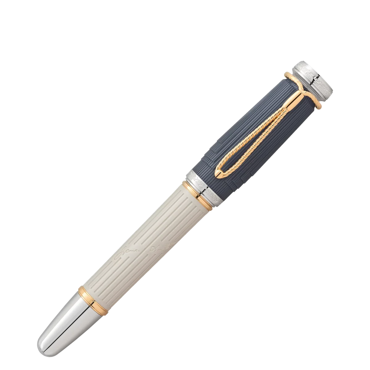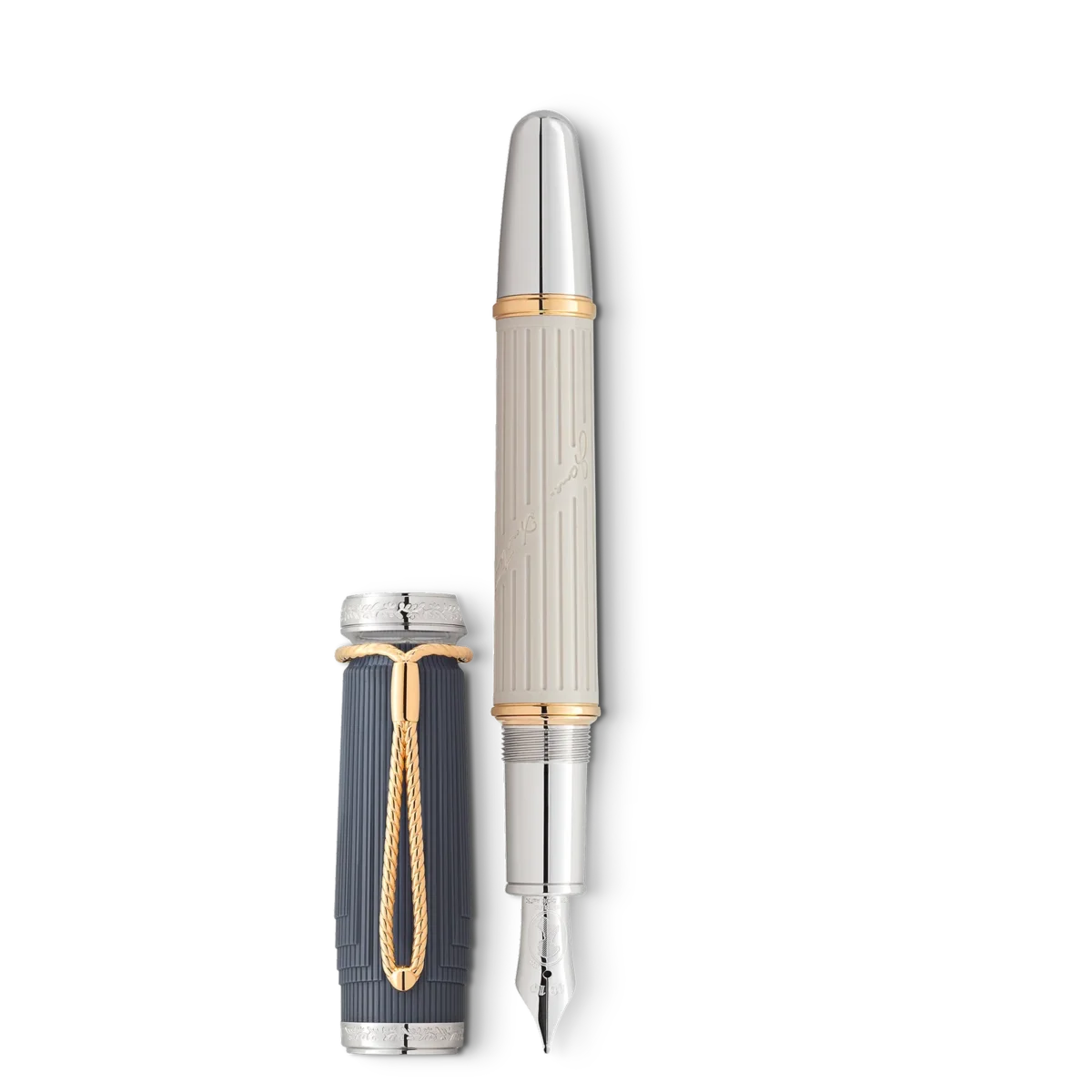 Pochi autori nella storia della letteratura hanno avuto la capacità di creare dialoghi e dare vita ai personaggi in modo così elegante, ironico e astuto come la scrittrice britannica Jane Austen. Montblanc ha creato la Writers Edition Homage to Jane Austen per celebrare una delle autrici più famose della letteratura inglese.Questa edizione riporta in vita l’epoca della Reggenza, quando le nobili tenute di campagna erano teatro di grandi feste organizzate allo scopo di coltivare relazioni sociali e stringere alleanze matrimoniali. Le scanalature di una colonna classica impreziosiscono l’elegante corpo in resina grigio arenaria, insieme alla firma di Jane Austen. Il cappuccio grigio-blu a contrasto richiama il tipo di cappotto a doppio colletto della Reggenza tipicamente indossato da gentiluomini come Mr Darcy in Orgoglio e pregiudizio. Gli anelli placcati in oro sul fusto e le finiture placcate in platino aggiungono il tocco finale al design. L’incisione dei numeri romani XLIII sull’anello del cappuccio è un riferimento al capitolo del romanzo in cui Elizabeth Bennet vede per la prima volta la tenuta di Mr Darcy.Il frontespizio del suo romanzo Ragione e sentimento, pubblicato nel 1811, dichiarava semplicemente che l’opera era stata scritta “Da una signora”. Questa dichiarazione di paternità adorna la parte superiore del cappuccio della Writers Edition Homage to Jane Austen Limited Edition, insieme all’emblema Montblanc. La silhouette dello strumento di scrittura stesso ricorda un sigillo di cera. La clip è insolita quanto il cappuccio. A forma di cordoncino intrecciato con chiusura a coulisse, ricorda quello di una “reticule”, un tipo di borsa utilizzata dalle donne intorno al 1800 per trasportare la cipria, lo specchio e l’indispensabile fazzoletto da taschino. L’unica silhouette conosciuta di Jane Austen, che ne mostra i lineamenti delicati, è immortalata come incisione artistica sul pennino in oro massiccio Au 750 placcato in rodio e realizzato a mano.