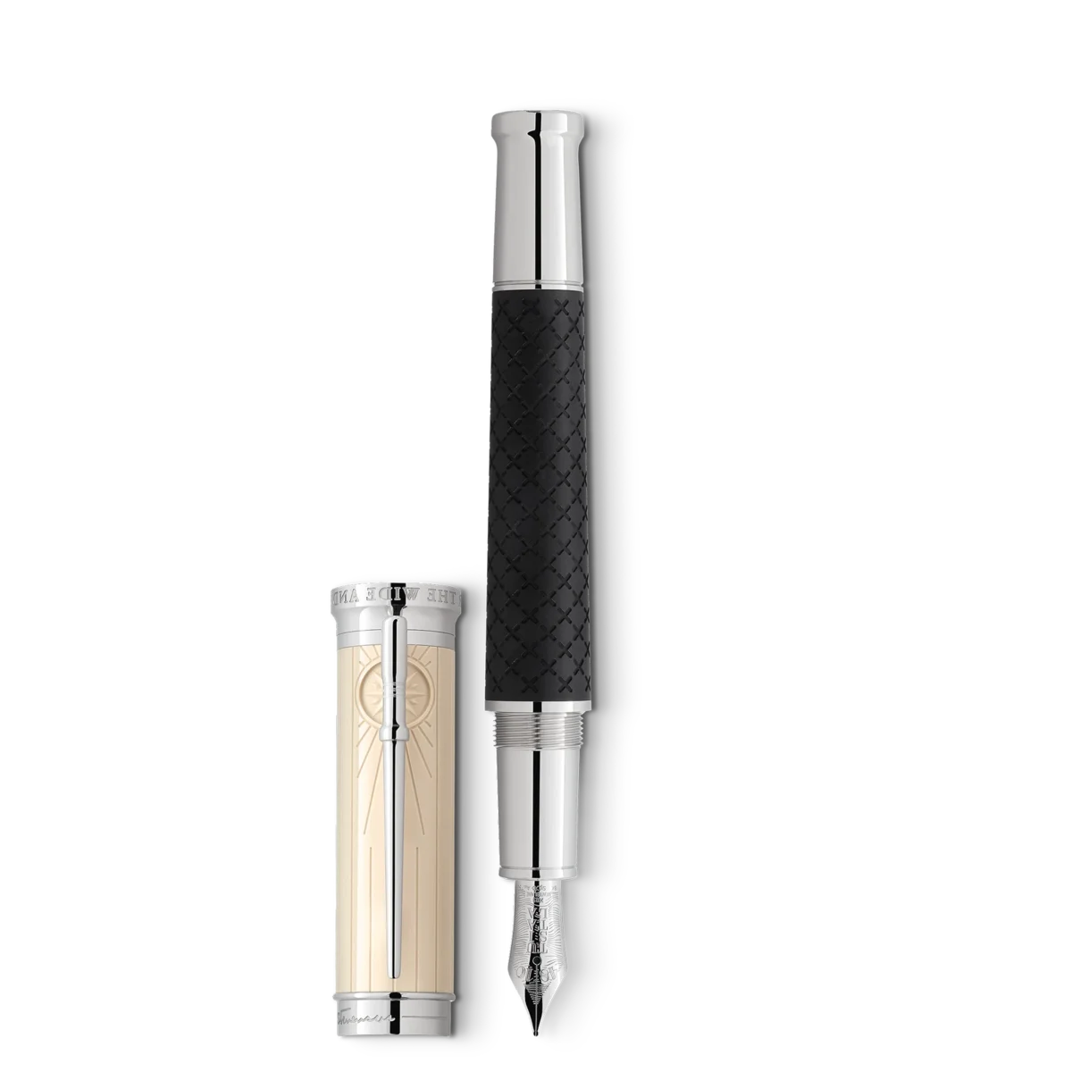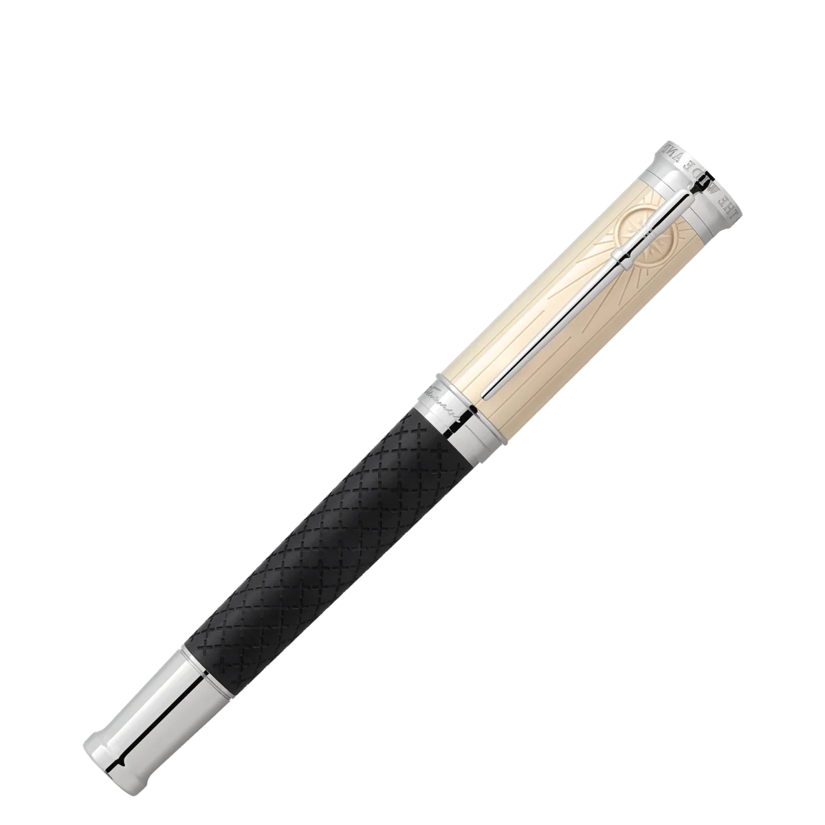 Robert Louis Stevenson, nato a Edimburgo, in Scozia, nel 1850, aveva due grandi desideri: la libertà e l’immersione in altri mondi. Ha scritto saggi e resoconti di viaggio, oltre alle sue leggendarie storie d’avventura popolate da personaggi straordinari i cui nomi fanno rabbrividire i lettori di tutto il mondo: Long John Silver, Capitano Flint, Jekyll e Hyde. La Montblanc Writers Edition Homage to Robert Louis Stevenson è dedicata a questo narratore fantasioso. Il romanzo “L’isola del tesoro” ha ispirato molti dettagli del design dell’edizione. La forma complessiva dello strumento di scrittura e gli anelli sul cono si combinano per creare l’impressione di un cannocchiale storico estensibile. Il fusto in resina nera pregiata è decorato con croci incise, tra cui una “X” più grande simile a quella che segna la posizione del tesoro su una mappa. Linee verticali che ricordano le assi della goletta “Hispaniola” e un tradizionale baule da marinaio adornano il cappuccio della Writers Edition. Dietro la clip rivestita in platino, le linee convergono in una rosa dei venti, mentre la clip imita la forma di un perno di fissaggio, al quale sarebbero state fissate le cime dell’attrezzatura di una nave. La parte superiore del cappuccio è coronata dall’emblema Montblanc con il simbolo dei pirati, un teschio e due ossa incrociate, in rilievo al centro. L’anello del cappuccio è decorato con un’incisione della firma di Stevenson accanto alla data di pubblicazione della sua prima opera “The Pentland Rising”, 1866. Le date 1850-1894 sono incise sul cappuccio per commemorare la vita di Robert Louis Stevenson. In riferimento alla passione di Robert Louis Stevenson per la navigazione e al suo trasferimento nei Mari del Sud, il pennino in oro massiccio 750 placcato in rodio, realizzato a mano, è inciso con delicate onde e il titolo dato dai samoani al grande scrittore e viaggiatore del mondo, “Tusitala”.