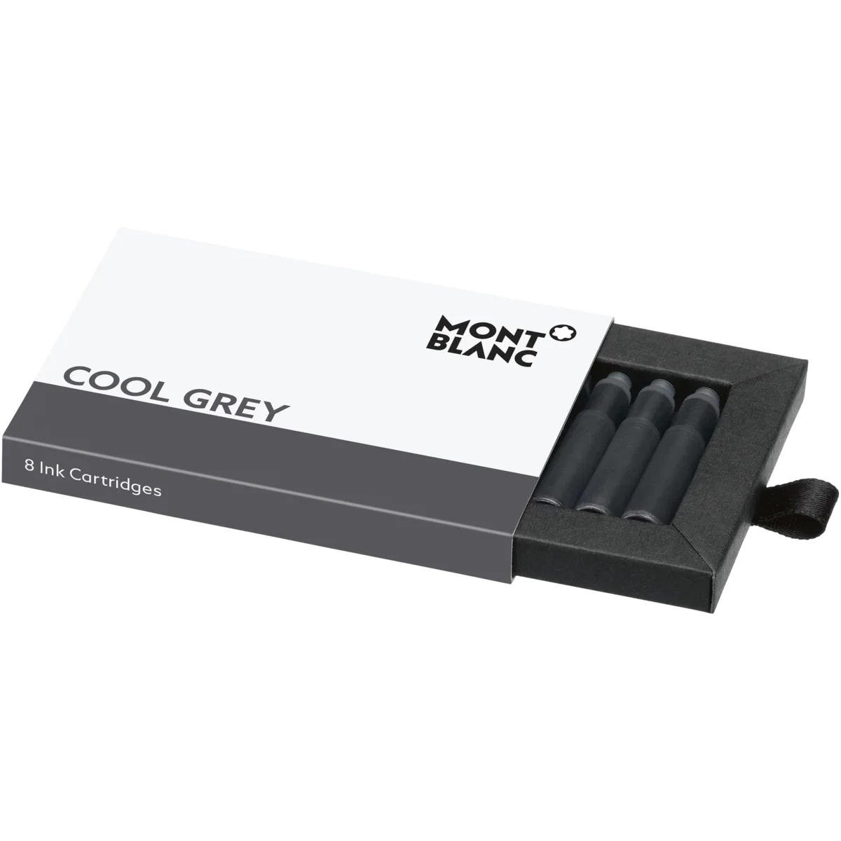 Cartucce d’inchiostro Montblanc, grigio freddo. Adatte a tutte le penne stilografiche Montblanc con sistema a cartuccia. Confezione = 8 cartucce.