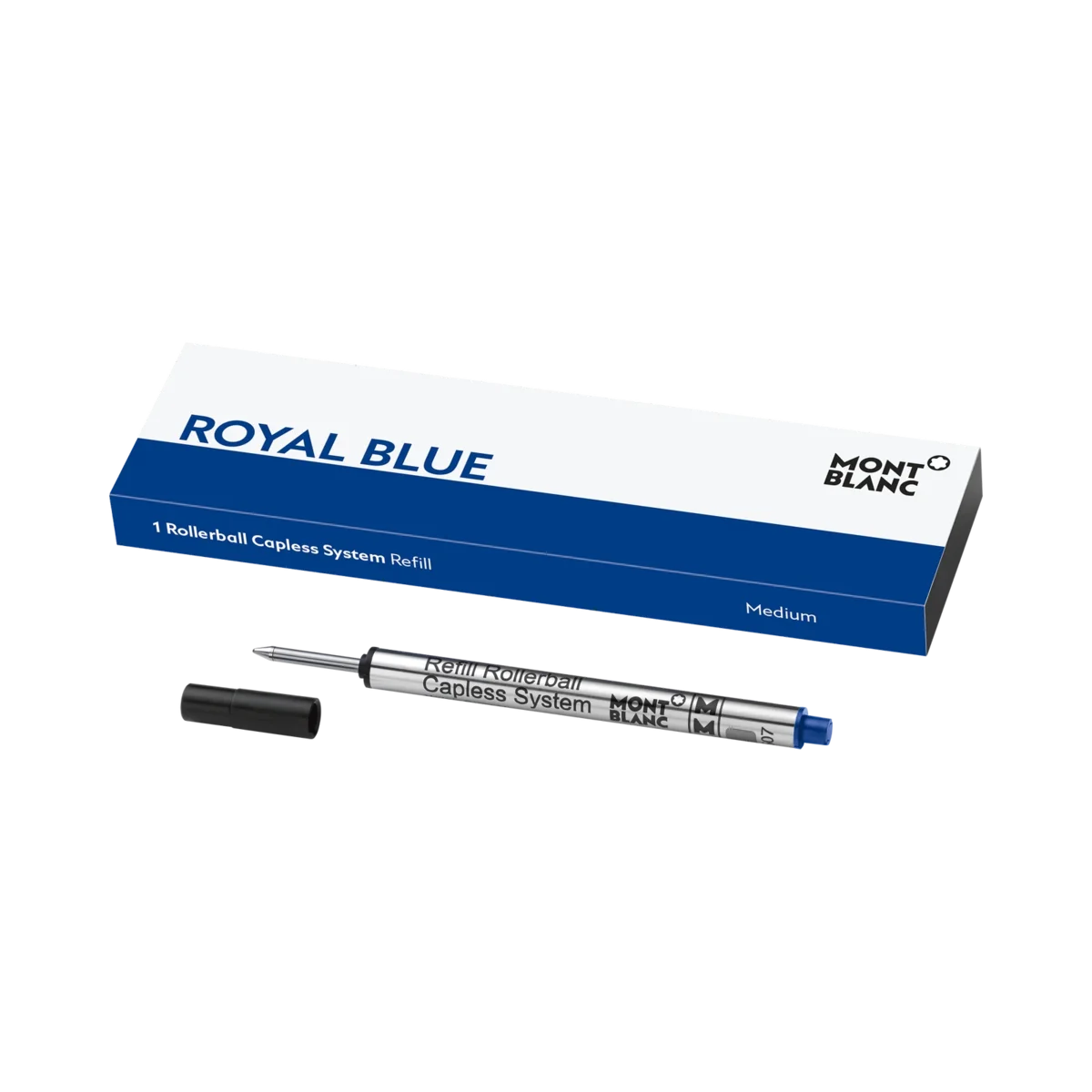 Ricarica per penna roller senza cappuccio Montblanc, blu reale. Adatta per penne Heritage collection 1912 senza cappuccio e penne roller Montblanc M. Confezione = 1 ricarica. M = Medio