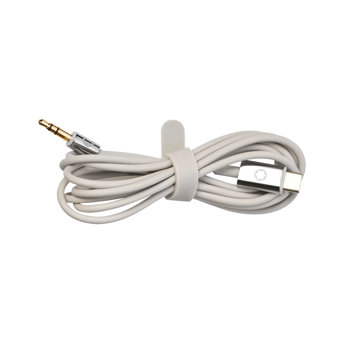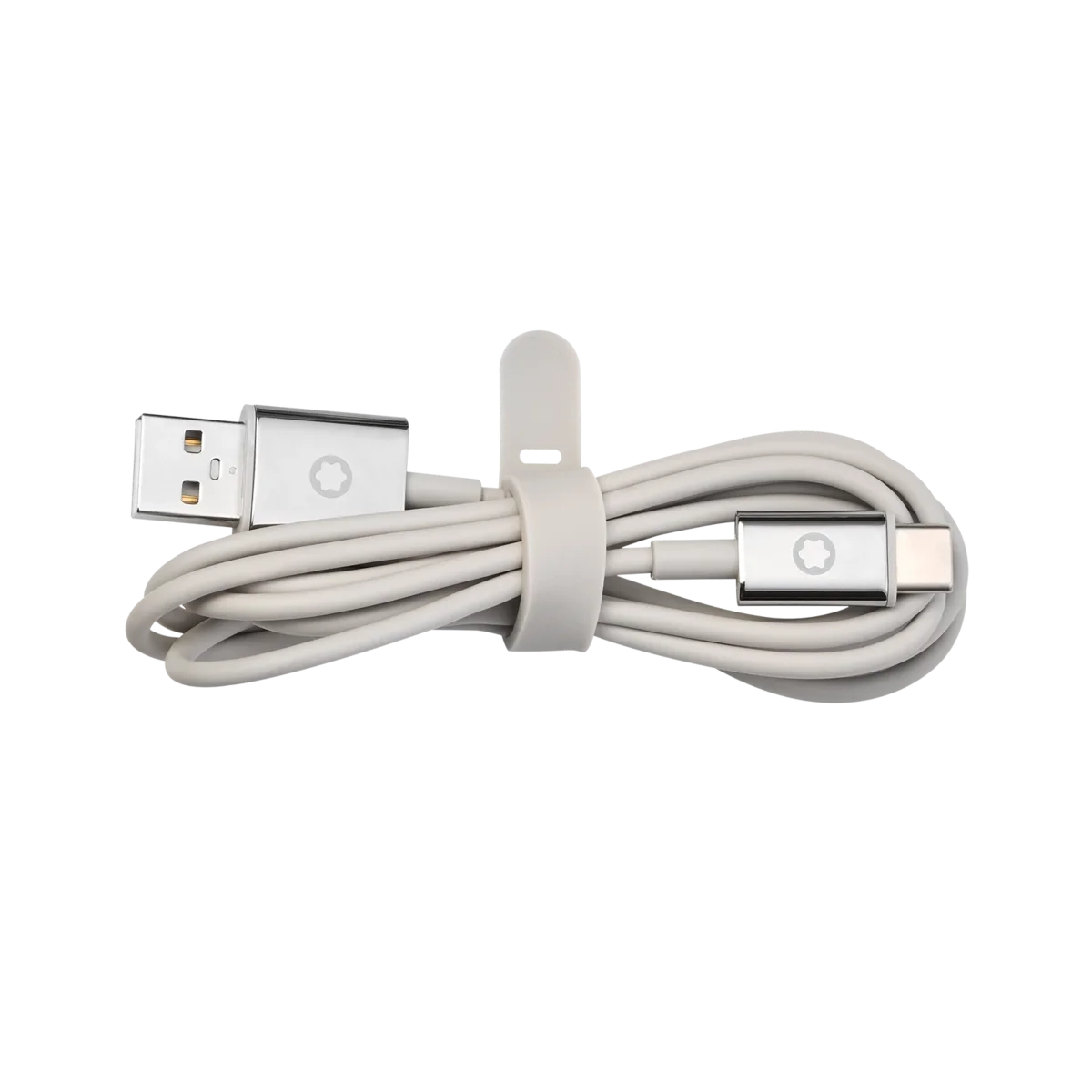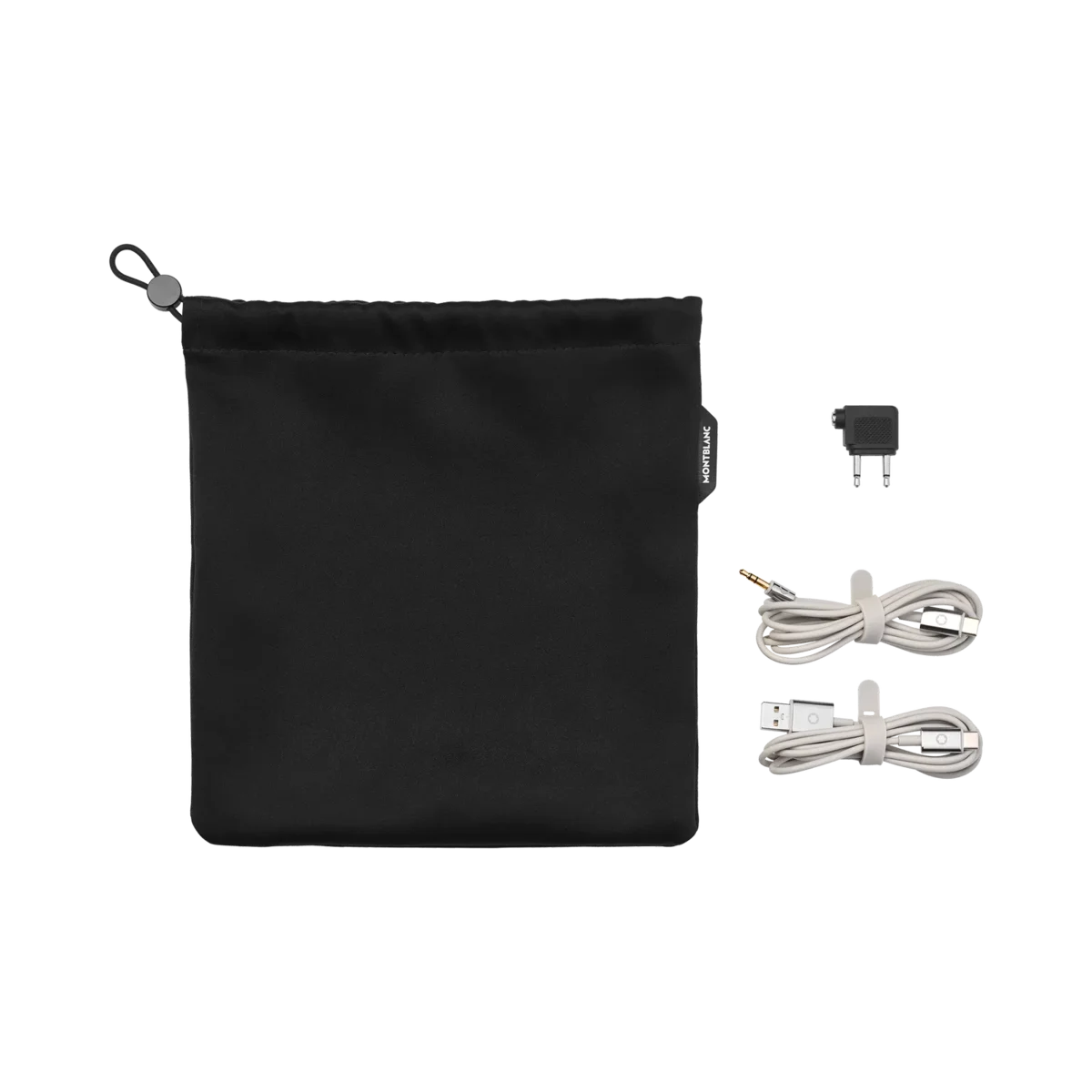 Set da viaggio extra per le tue cuffie Montblanc MB 01 contenente una custodia nera, un cavo di ricarica USB-C grigio, un cavo audio grigio e un adattatore da viaggio nero.