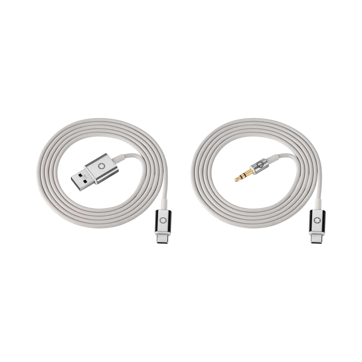 Set di cavi aggiuntivo per le cuffie Montblanc MB 01 contenente un cavo di ricarica USB-C grigio e un cavo audio grigio.