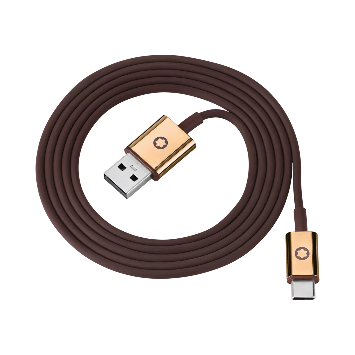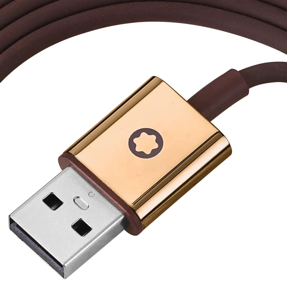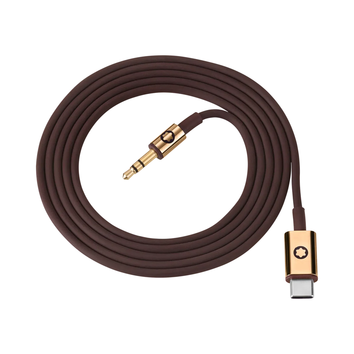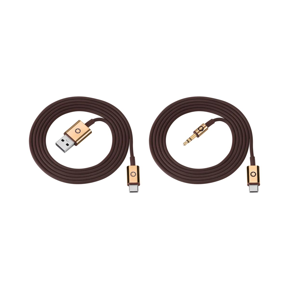 Set di cavi aggiuntivo per le cuffie Montblanc MB 01 contenente un cavo di ricarica USB-C marrone e un cavo audio marrone.