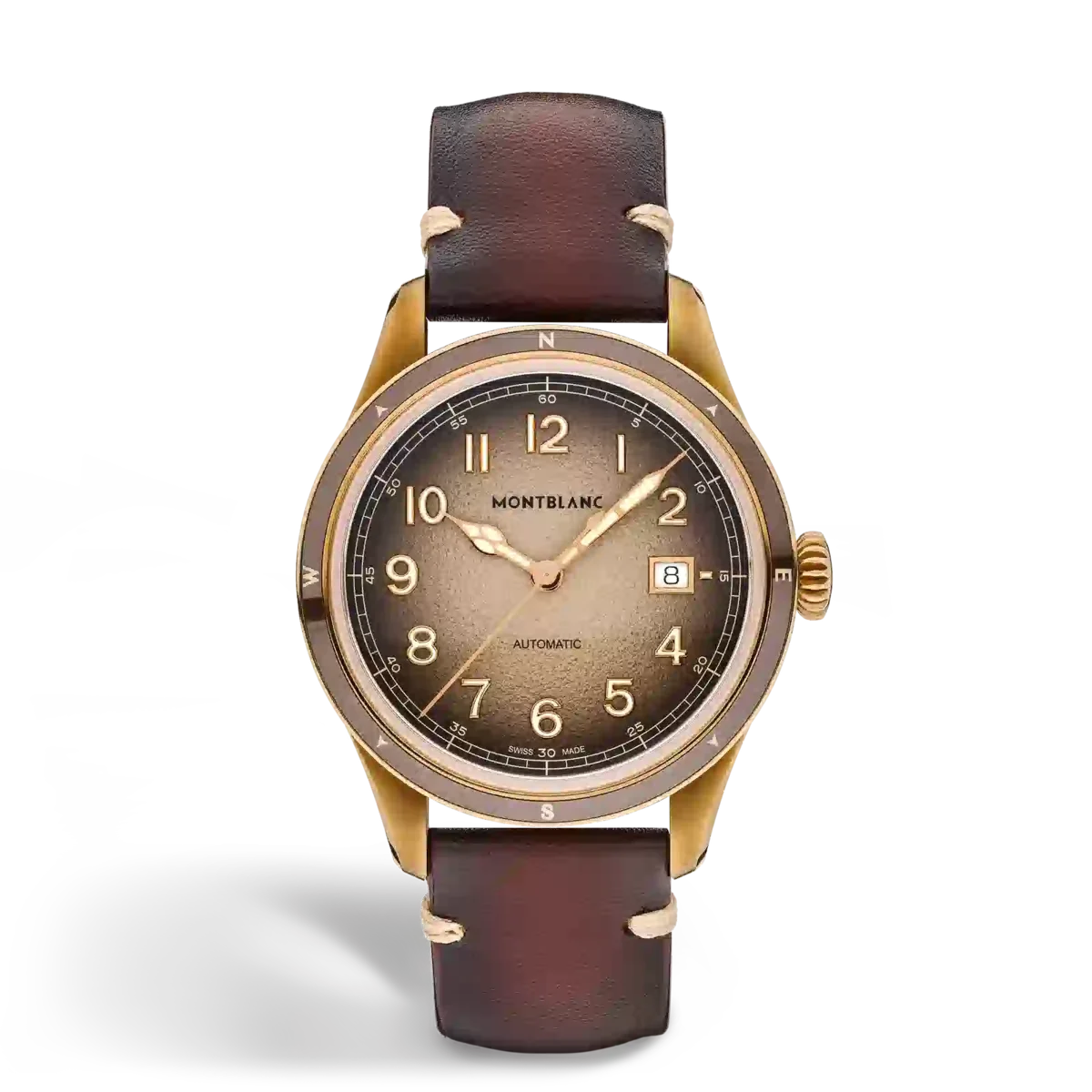 Il Montblanc 1858 Automatic Date 0 Oxygen è racchiuso in una cassa in bronzo da 41 mm totalmente priva di ossigeno. È completato da una lunetta fissa con inserto in ceramica marrone e punti cardinali luminescenti. Il fondello presenta l’incisione speciale “Spirit of Exploration”. L’orologio è alimentato dal calibro automatico MB 24.17 ed è dotato di un quadrante sfumato marrone granulato con numeri arabi luminescenti rivestiti in oro rosa bianco. È dotato di un cinturino intercambiabile in pelle di vitello sfumata marrone con cuciture beige.