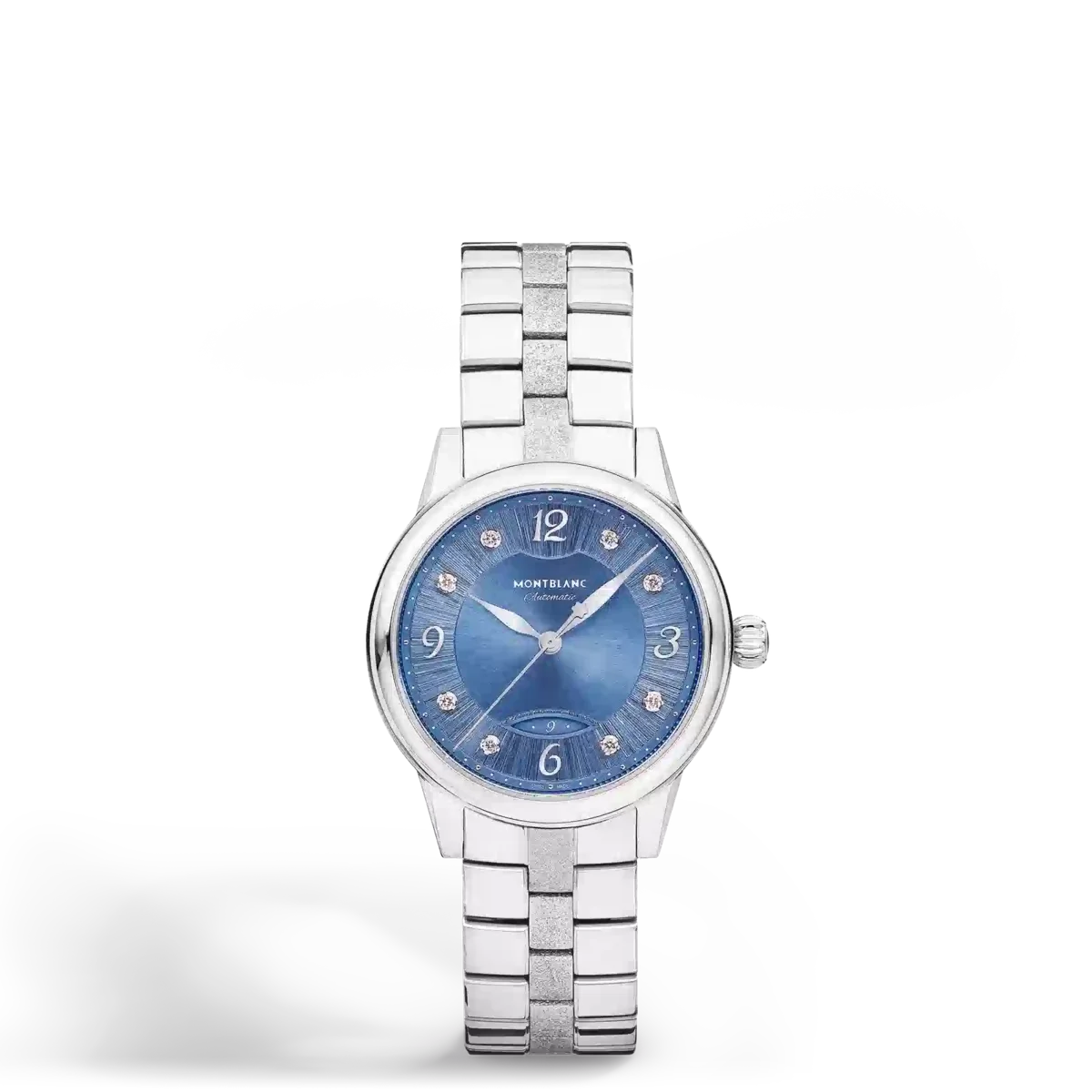 Interpretando i codici dell’alta orologeria in modo elegante e femminile, il Montblanc Bohème Automatic Date si ispira al mondo della scrittura a mano ed è disponibile in una cassa in acciaio inossidabile da 30 mm. Presenta un elegante quadrante blu spazzolato sole adornato con indici di diamanti, numeri arabi floreali rivestiti in rodio e lancette. Altri dettagli raffinati includono un motivo filet sauté e una tecnica di stampaggio chiamata filé d’étoiles. Dotato del calibro automatico MB 24.29, questo modello indica le ore, i minuti e i secondi, oltre alla data visualizzata in un’apertura a forma di mandorla con numeri scritti a mano. Il romantico carattere tipografico è stato applicato anche al quadrante per la dicitura “Automatic”. Questo segnatempo è dotato di un bracciale intercambiabile in acciaio inossidabile con maglia centrale testurizzata e sistema di regolazione fine. Numero di identificazione MB134341
