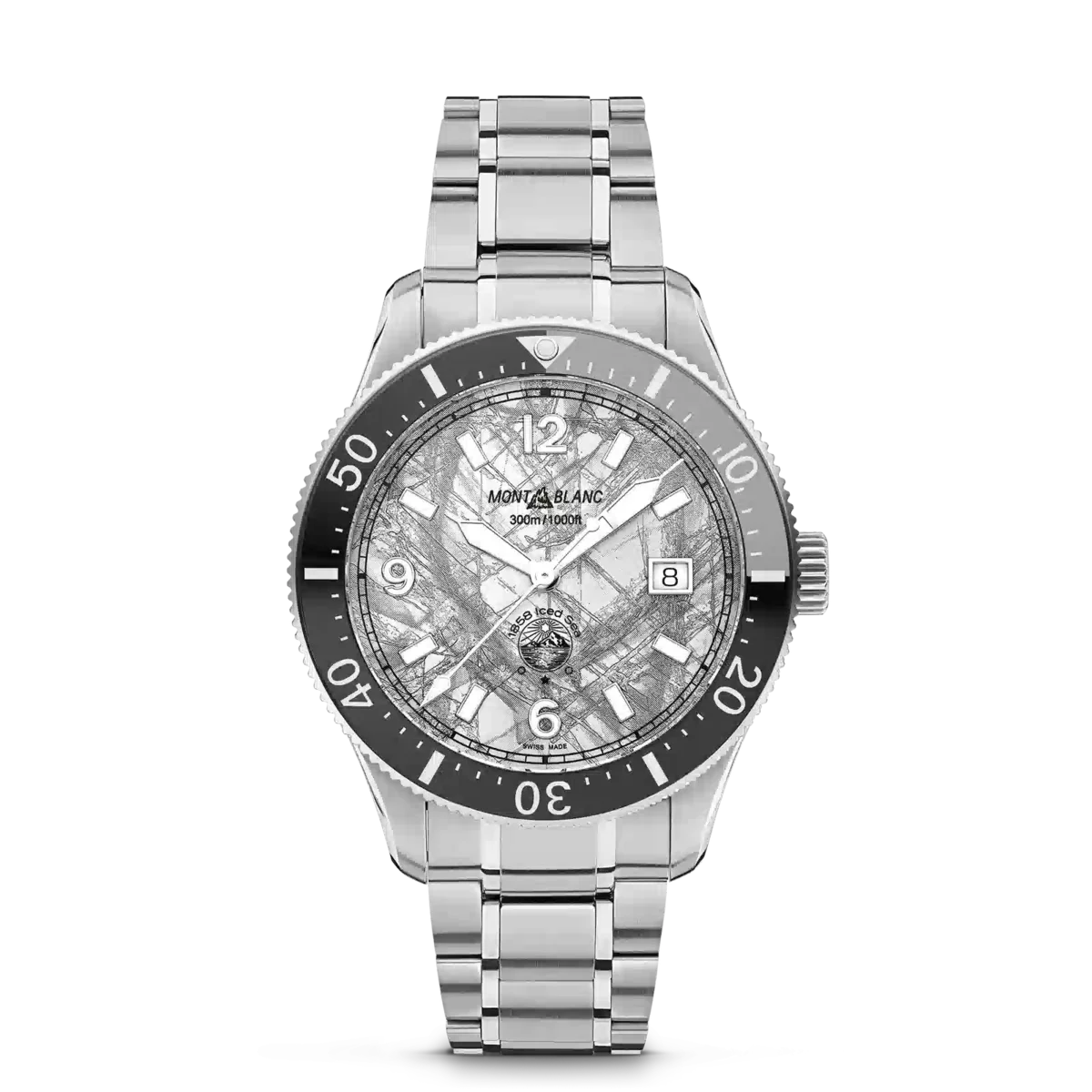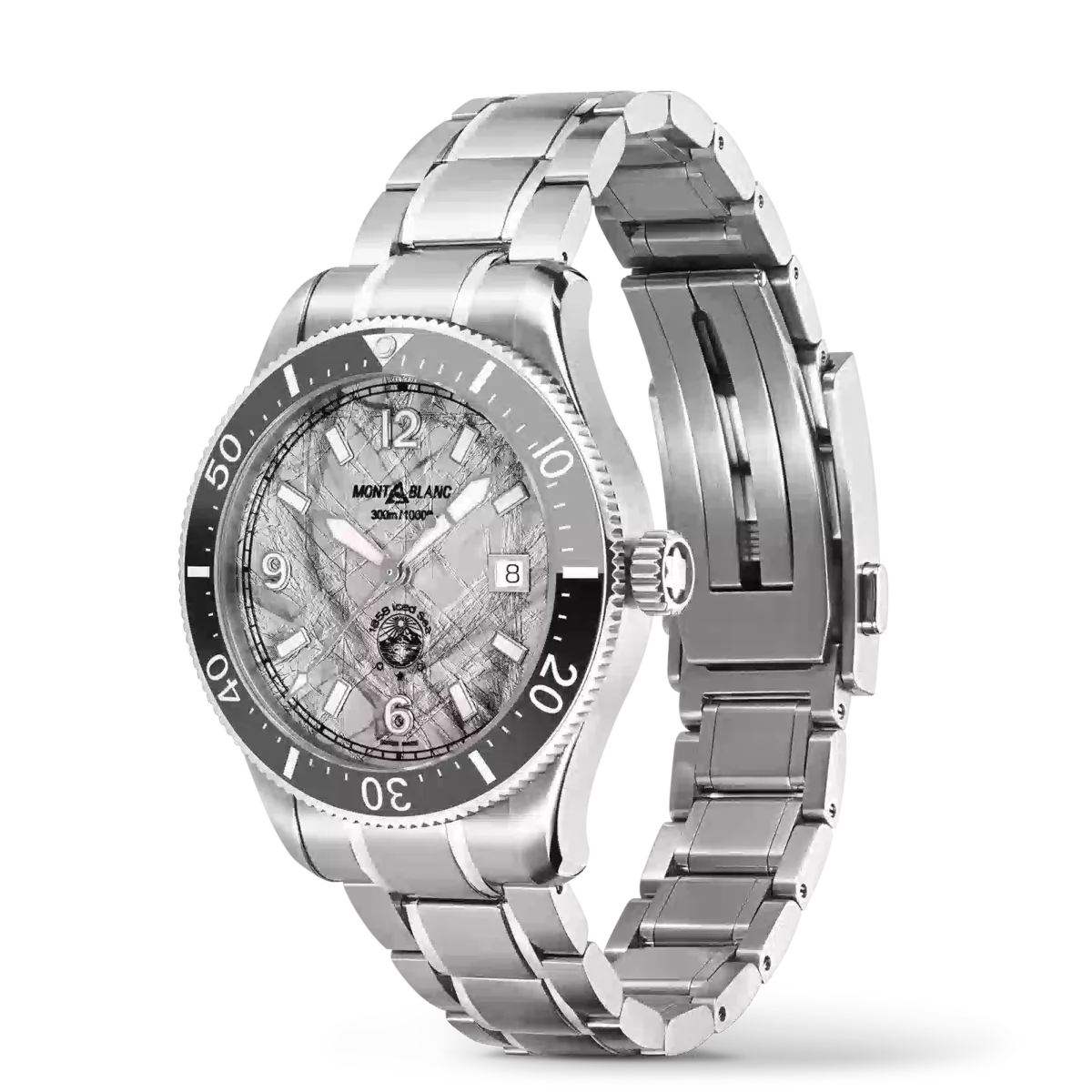 Il Montblanc Iced Sea Automatic Date con quadrante grigio con motivo ghiacciaio dà l’impressione di guardare nelle profondità di un ghiacciaio con tutti i suoi minerali catturati nel tempo per millenni. Ispirata alla Mer de Glace, questa texture glaciale è stata ottenuta utilizzando una tecnica ancestrale quasi dimenticata chiamata gratté-boisé. L’orologio da 41 mm è dotato di un bracciale intercambiabile in acciaio inossidabile che può essere sostituito rapidamente e facilmente con un cinturino in caucciù nero con contorno grigio, senza bisogno di tornare in boutique o di utilizzare alcun attrezzo. È inoltre regolabile al polso quando si indossa l’orologio per le immersioni. L’orologio è conforme alla norma ISO 6425 per le immersioni subacquee, ha un’impermeabilità di 300 metri e presenta indici luminescenti per la lettura in condizioni di scarsa illuminazione.