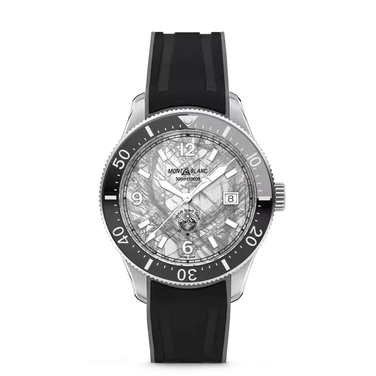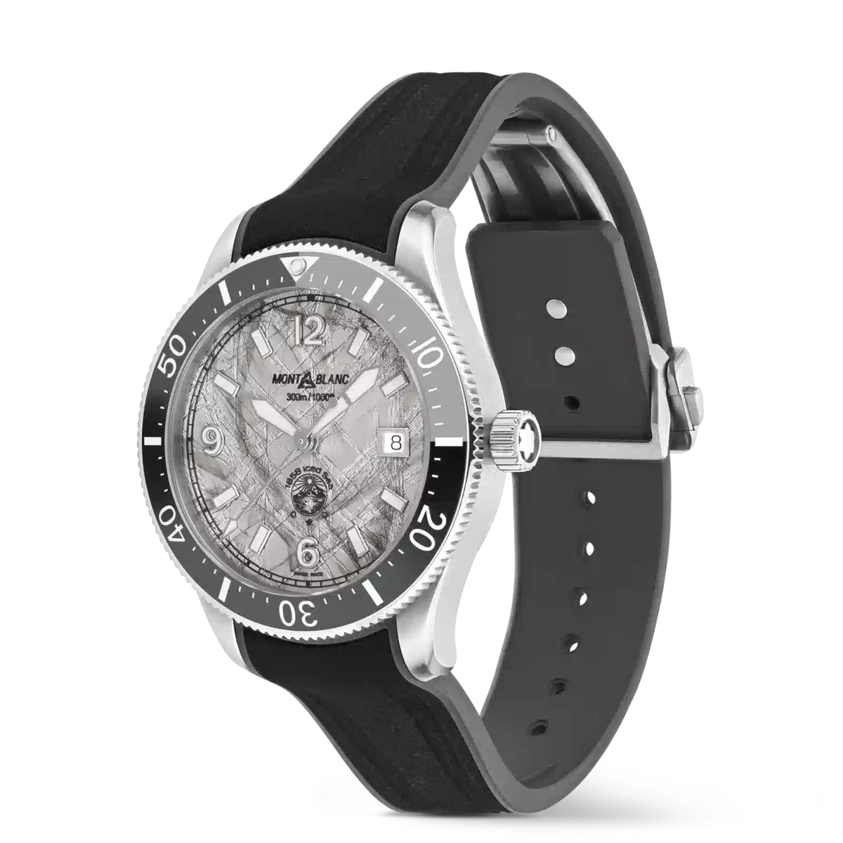 Il Montblanc Iced Sea Automatic Date con quadrante grigio con motivo ghiacciaio dà l’impressione di guardare nelle profondità di un ghiacciaio con tutti i suoi minerali catturati nel tempo per millenni. Ispirata alla Mer de Glace, questa texture glaciale è stata ottenuta utilizzando una tecnica ancestrale quasi dimenticata chiamata gratté-boisé. L’orologio da 41 mm è dotato di un cinturino in caucciù intercambiabile nero con contorno grigio che può essere sostituito rapidamente e facilmente con un bracciale in acciaio inossidabile senza bisogno di tornare in boutique o di utilizzare alcun attrezzo. È inoltre regolabile al polso quando si indossa l’orologio per le immersioni. L’orologio è conforme alla norma ISO 6425 per le immersioni subacquee, ha un’impermeabilità di 300 metri e presenta indici luminescenti per la lettura in condizioni di scarsa illuminazione.