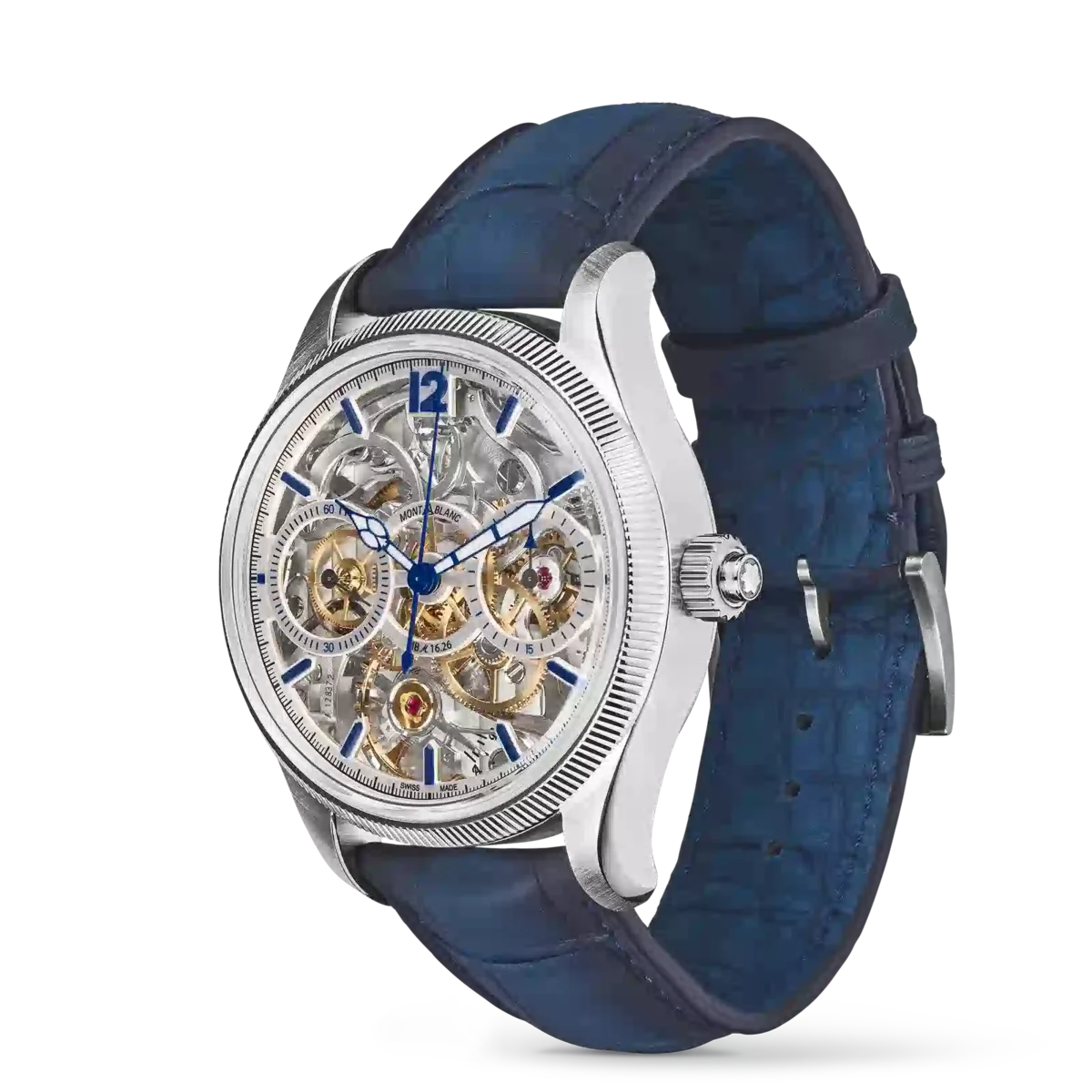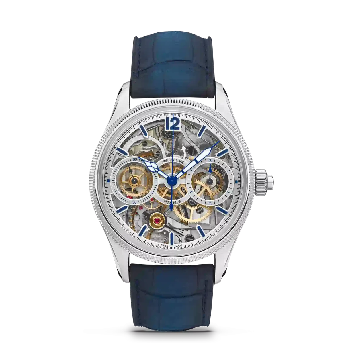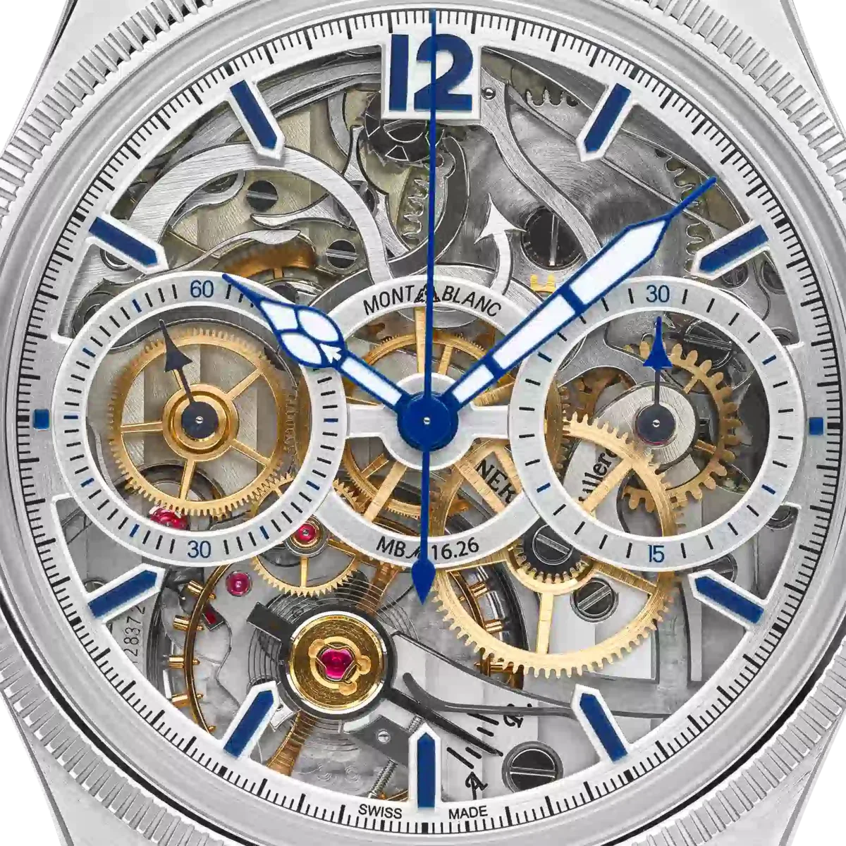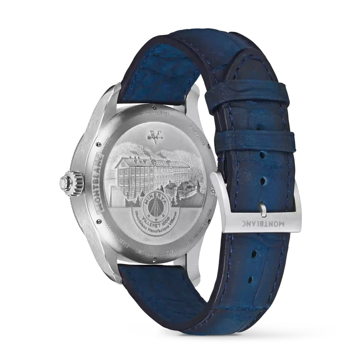 Il Montblanc 1858 The Unveiled Secret Minerva Monopusher Chronograph Limited Edition offre una vista ininterrotta sul calibro di manifattura MB M16.29 della Maison, che è stato capovolto per rivelare tutta la magia del movimento cronografico. Capovolgere un movimento sembra semplice, ma è un’impresa tecnica poiché anche la direzione delle lancette deve essere invertita. Questa edizione limitata di 58 pezzi è disponibile in una cassa in acciaio inossidabile da 43 mm con lunetta scanalata in oro bianco 750/1000 (18 carati) e presenta lancette e indici blu, oltre a un cinturino in pelle di alligatore blu.