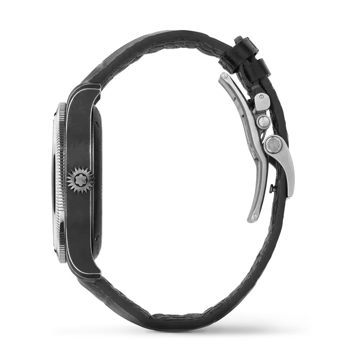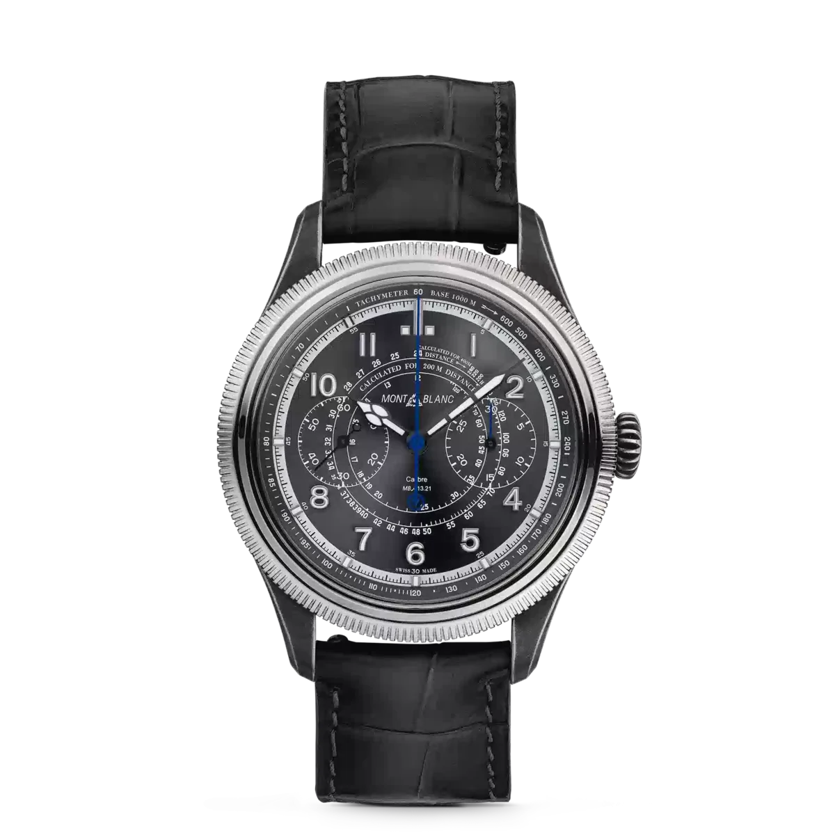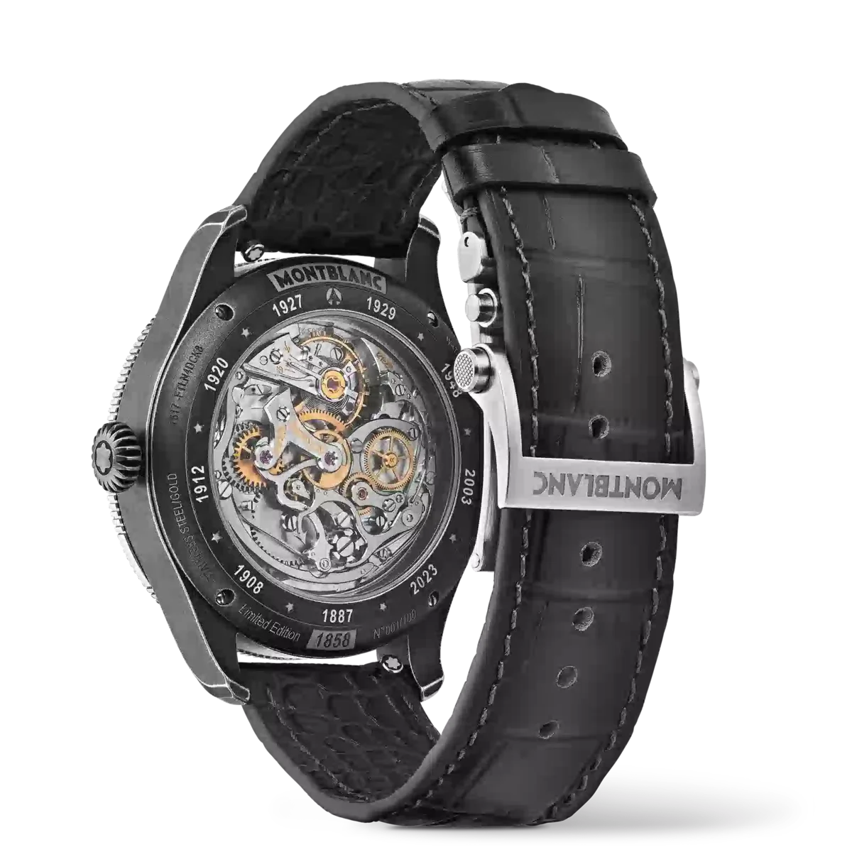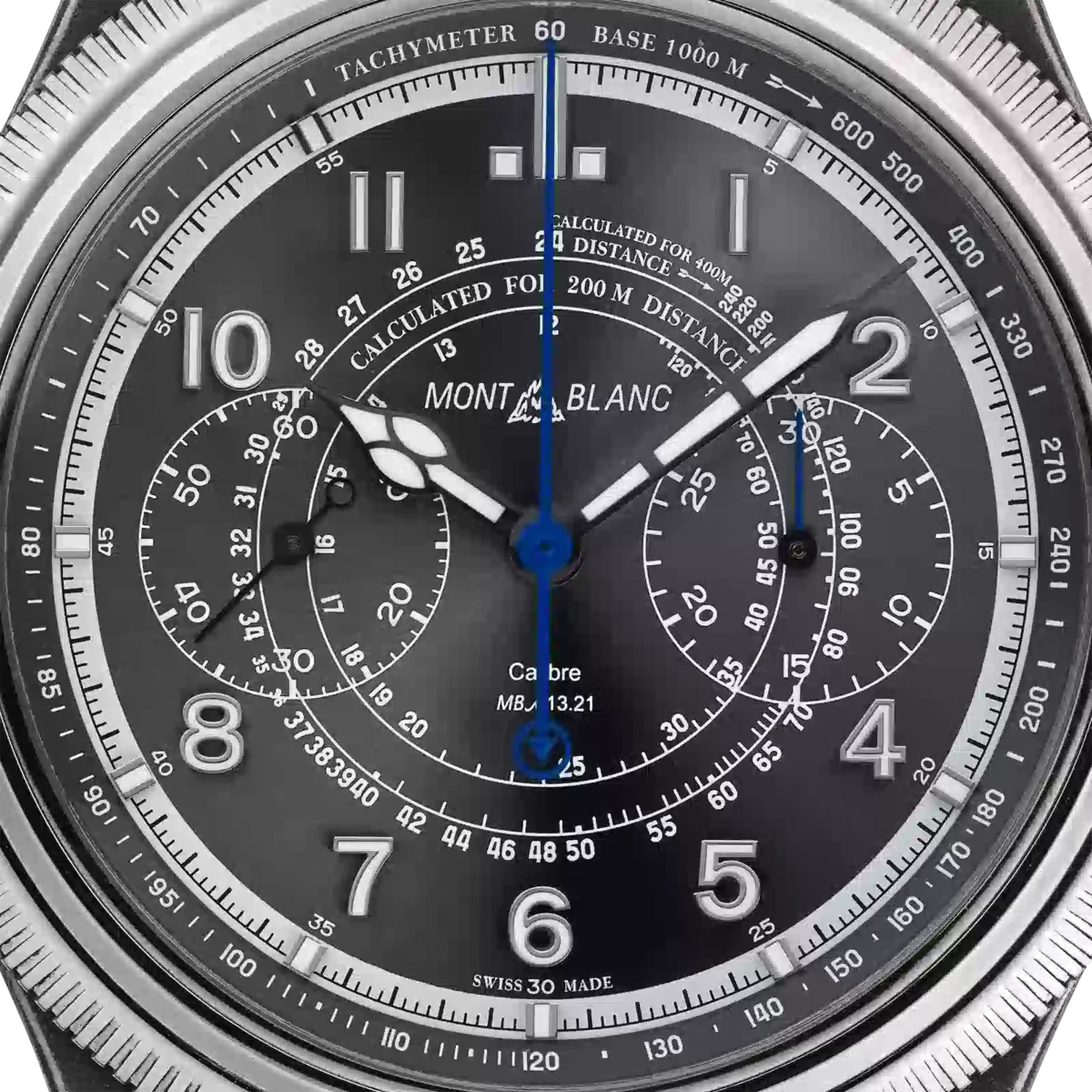 Il Montblanc 1858 Unveiled Timekeeper Minerva Limited Edition ripensa le convenzioni. Anziché utilizzare i tradizionali pulsanti, il cronografo viene attivato tramite la lunetta scanalata. Basta un solo clic sulla lunetta scanalata in oro bianco 750/1000 (18 carati) per avviare il cronografo. Un secondo clic lo ferma, mentre un terzo clic lo azzera, trasformando il cronografo come lo conosciamo. L’orologio è dotato di una cassa in acciaio invecchiato da 42,5 mm, un quadrante grigio e un cinturino intercambiabile in pelle di vitello grigio con stampa alligatore. È alimentato dal calibro MB M13.21 di manifattura, rifinito a mano e a carica manuale, ed è limitato a 100 esemplari. Numero di identificazione: MB133246 Larghezza ansa: 21 mm