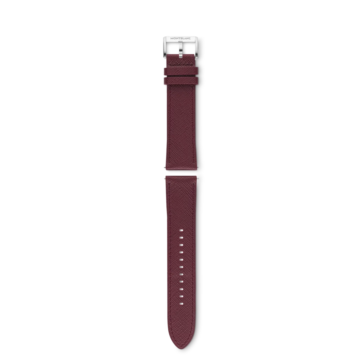 Cinturino in pelle di vitello bordeaux con stampa saffiano da 22 mm con fibbia ad ardiglione regolabile in acciaio inossidabile. Compatibile con tutti gli smartwatch Montblanc Summit.