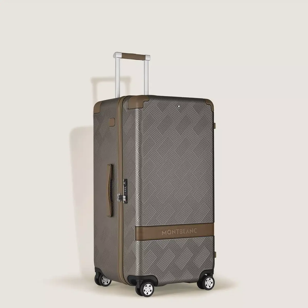 Scopri la serie di trolley #MY4810 e la sua ultima novità: una valigia capiente dalla forma innovativa, realizzata in policarbonato leggero color argento, stampata con un motivo Extreme 3.0 ingrandito per un look distintivo e impreziosita da eleganti finiture in pelle nera. Viaggia senza sforzo grazie alle 4 ruote silenziose con cuscinetti a sfera, alle estensioni stabili della barra multi-lunghezza con sistema multi-stop e ai comodi manici in pelle. All’interno, goditi uno spazioso scomparto per i vestiti con cinturino regolabile su un lato e rete nera sull’altro, chiusura con cerniera e tasca per biglietti da visita. Rendi il tuo trolley unico con un’etichetta per bagagli e un’etichetta personalizzata in colore noisette.